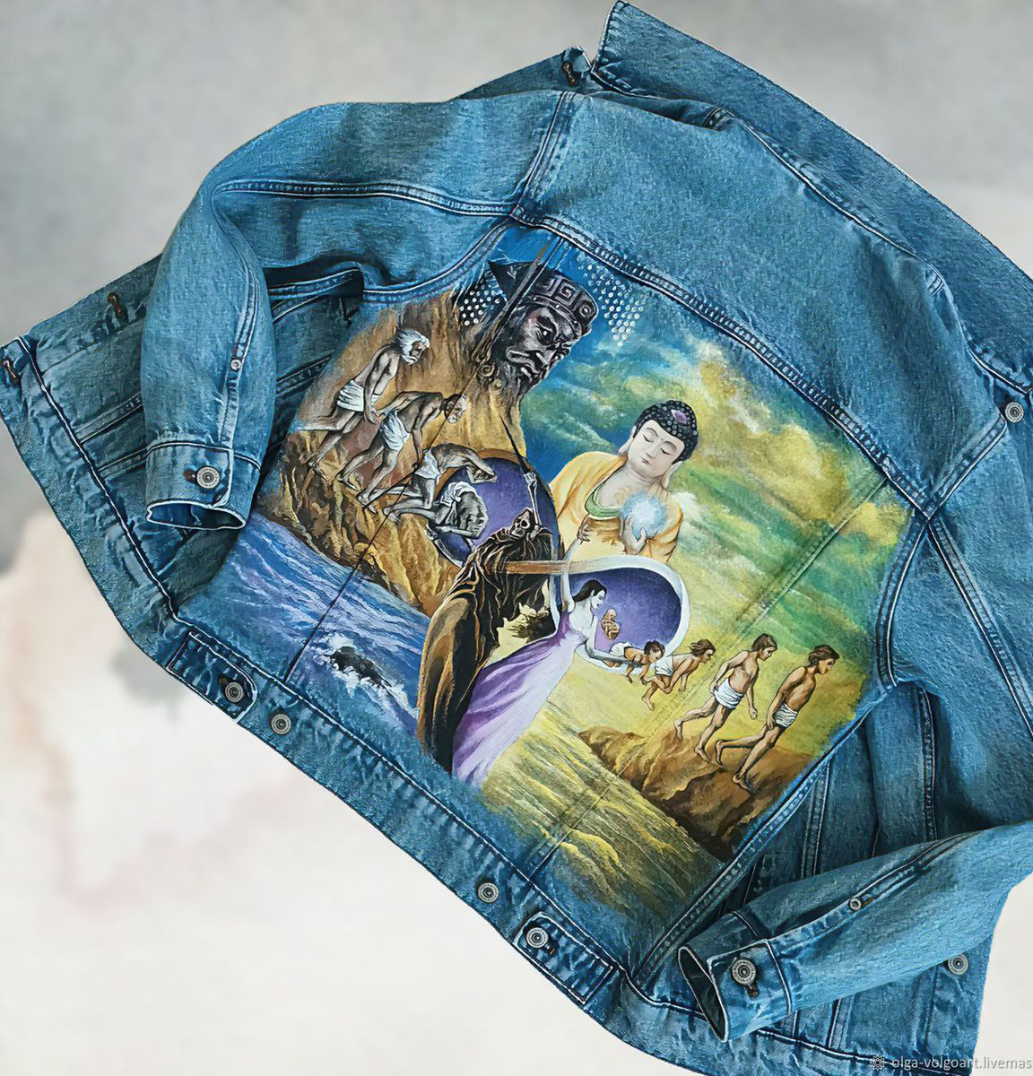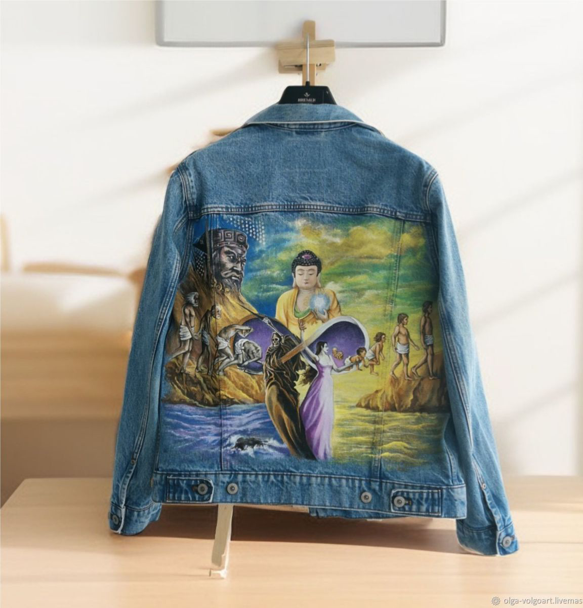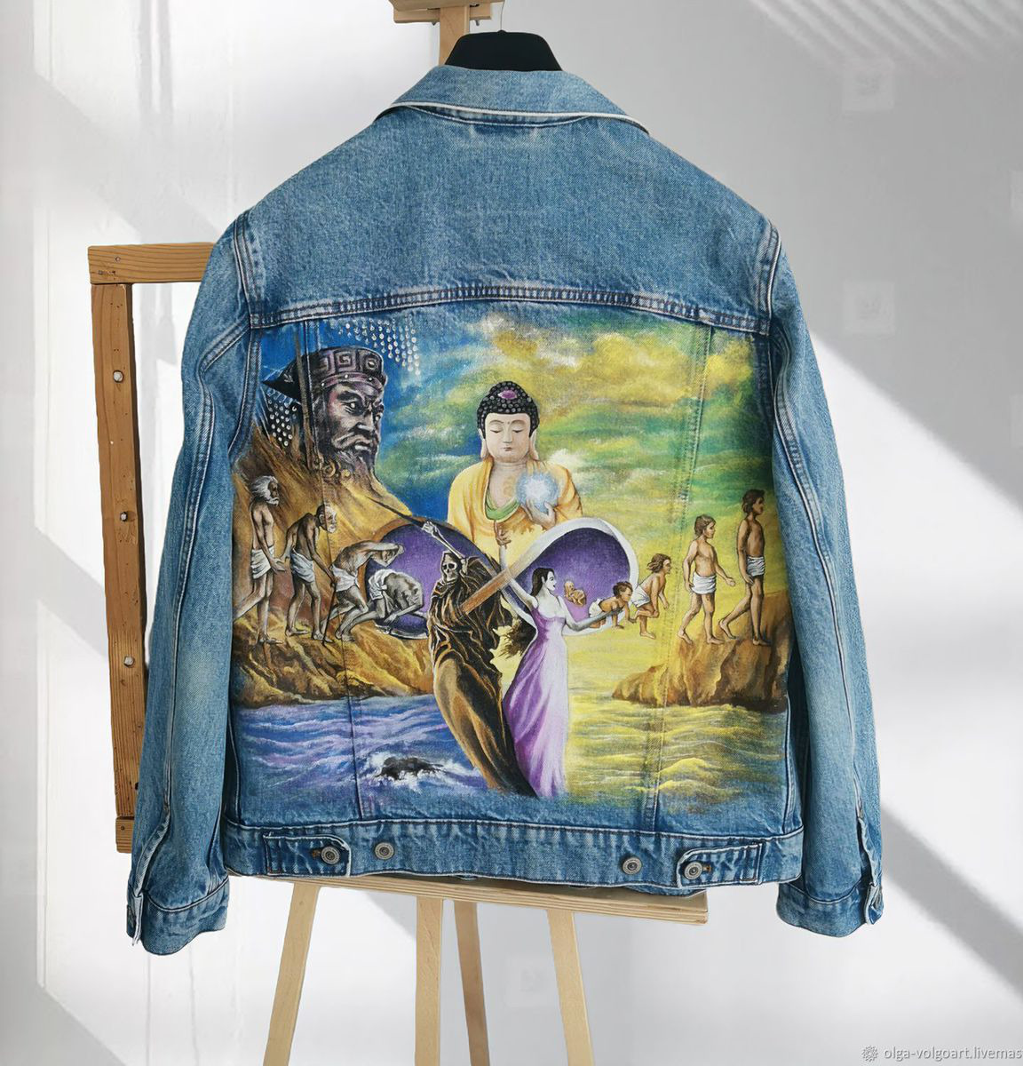 Джинсовая куртка с рисунком на спине, ручная роспись реинкарнация, кастомизация