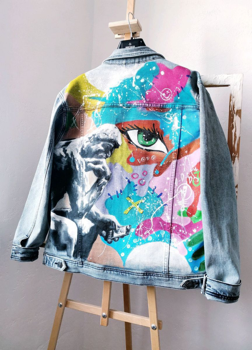 авторская работа, ручная работа, одежда, подарок, стиль, дизайнерская одежда, уникальный подарок, ручная авторская работа, модная одежда, авторский дизайн, унисекс, джинсовый стиль, стильный подарок, куртка, молодежная мода, молодежный стиль, ручная роспись, дизайнерская работа, джинсовая куртка, арт, куртка с росписью, куртка джинсовая, граффити, джинсовая куртка купить, кастом, кастомизация