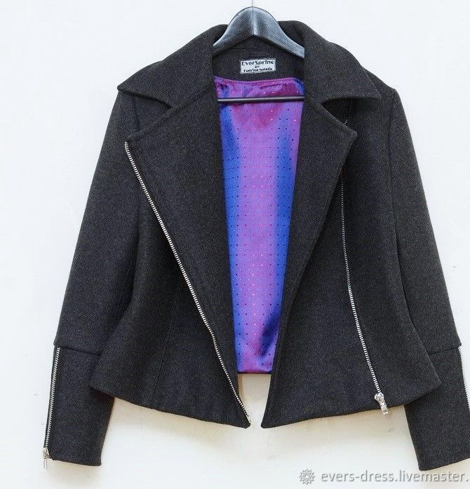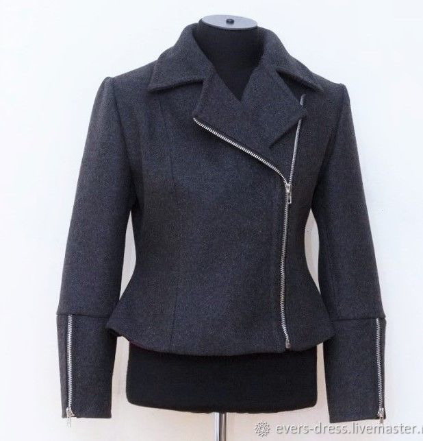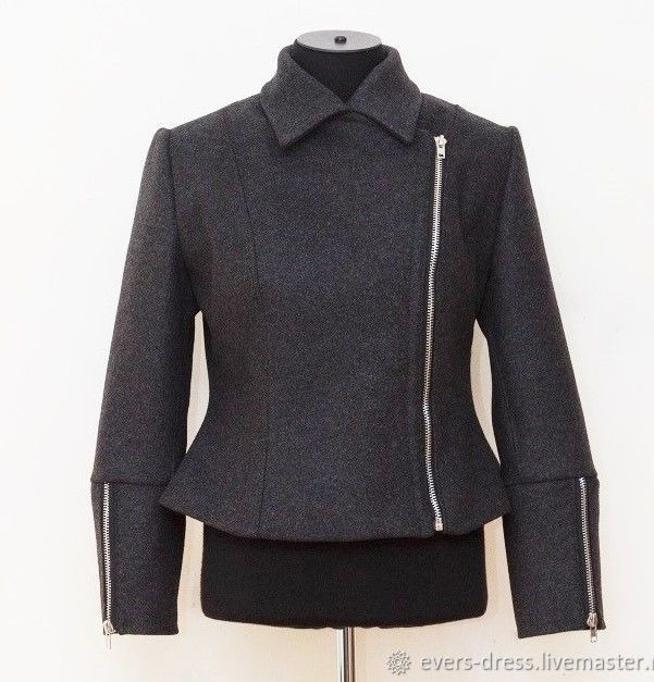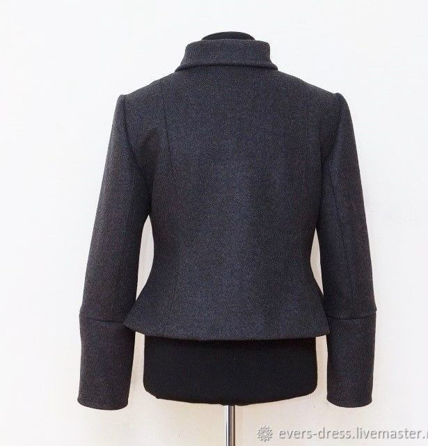 Приталенный короткий вариант пальто, пальто-пиджак, лёгкий, не сковывает движений, удобен как в личном, так и в общественном транспорте.