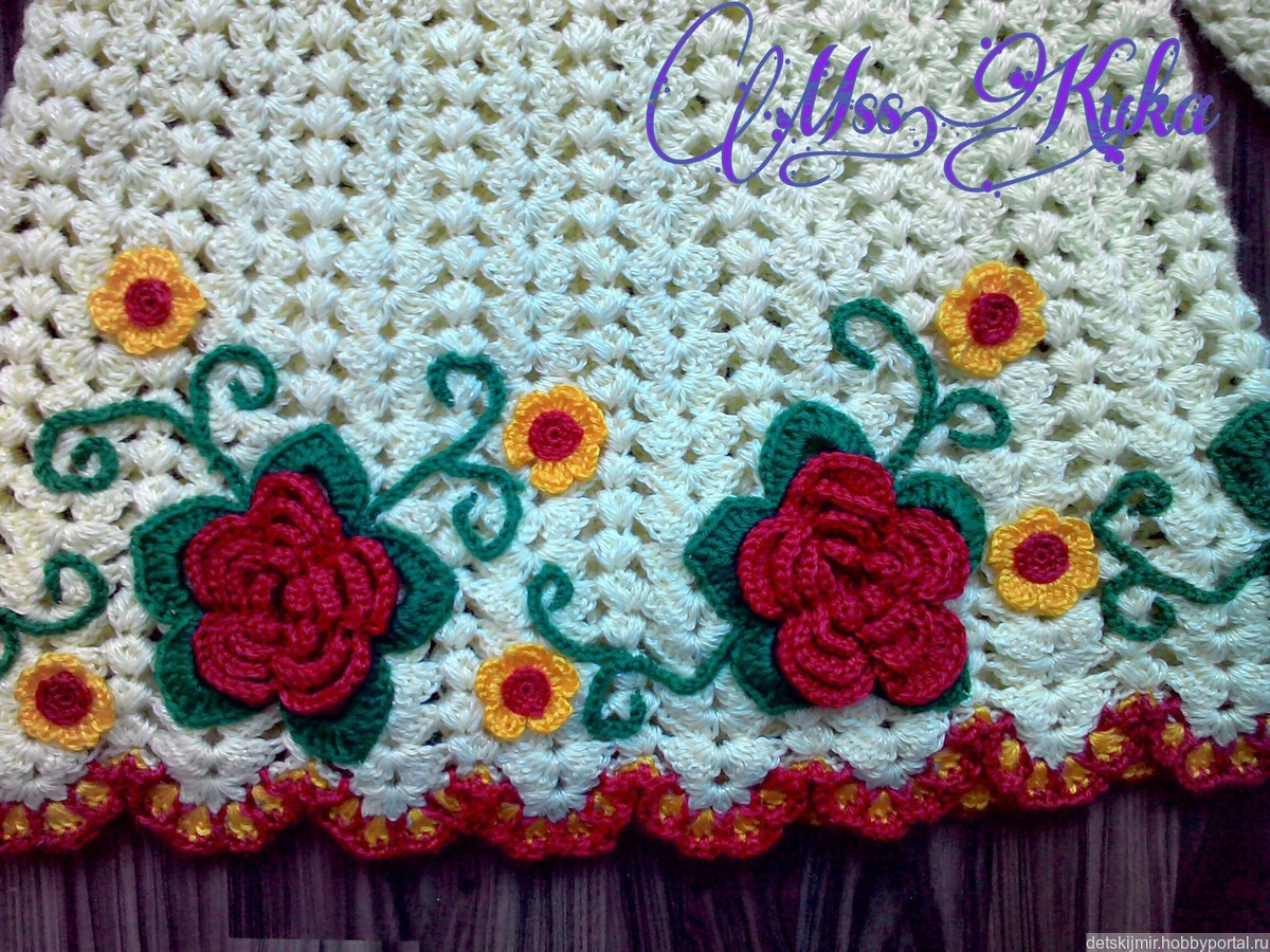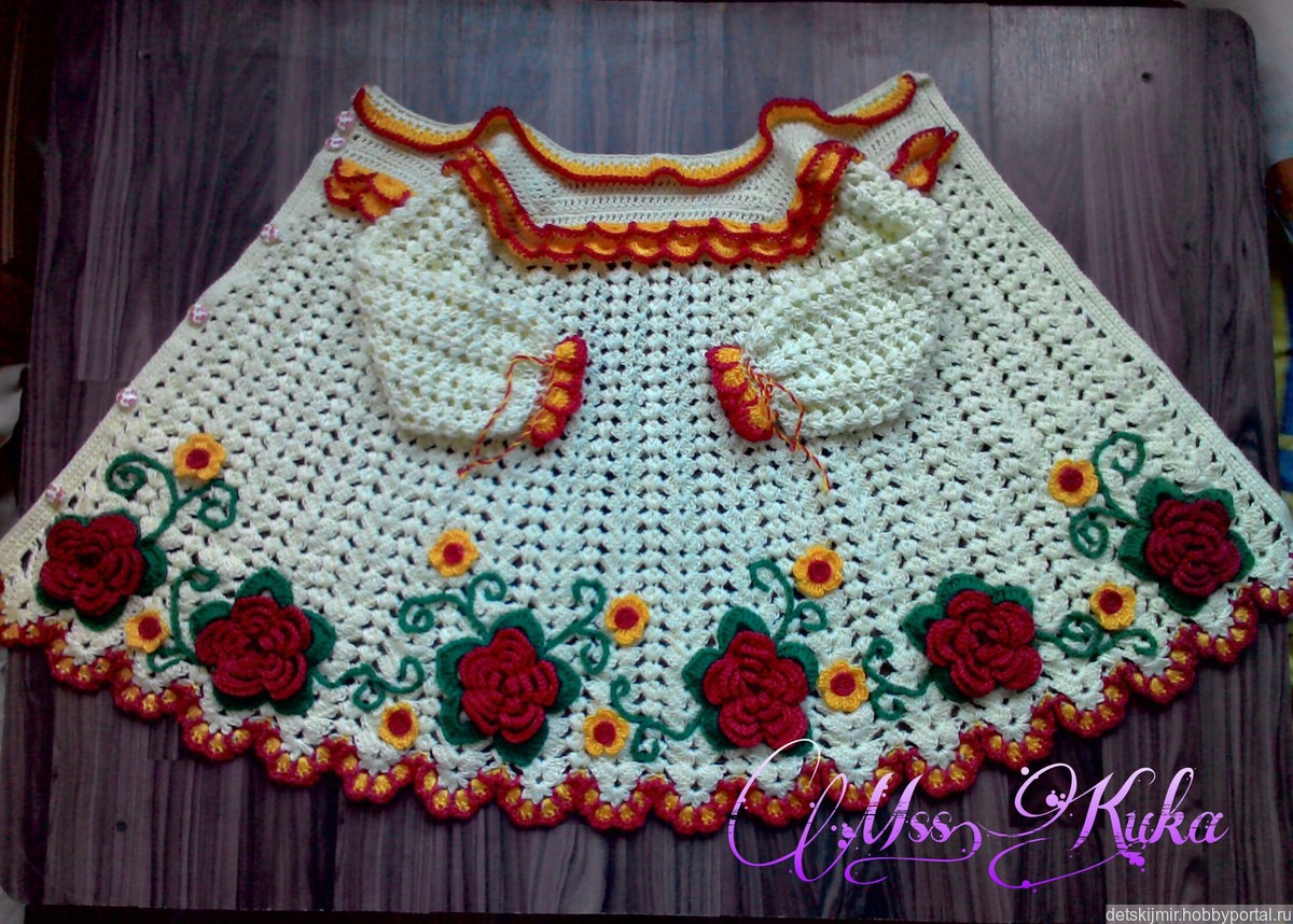 Пальтишко для малышки. Связано крючком из полушерсти. Украшения крепко пришиты. Размер индивидуален для каждого.