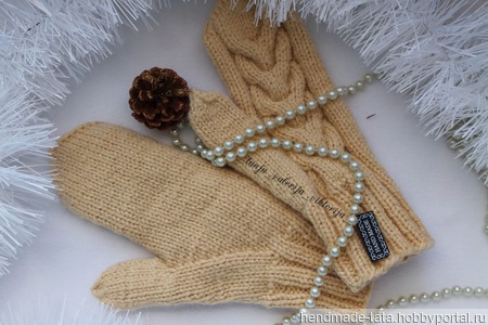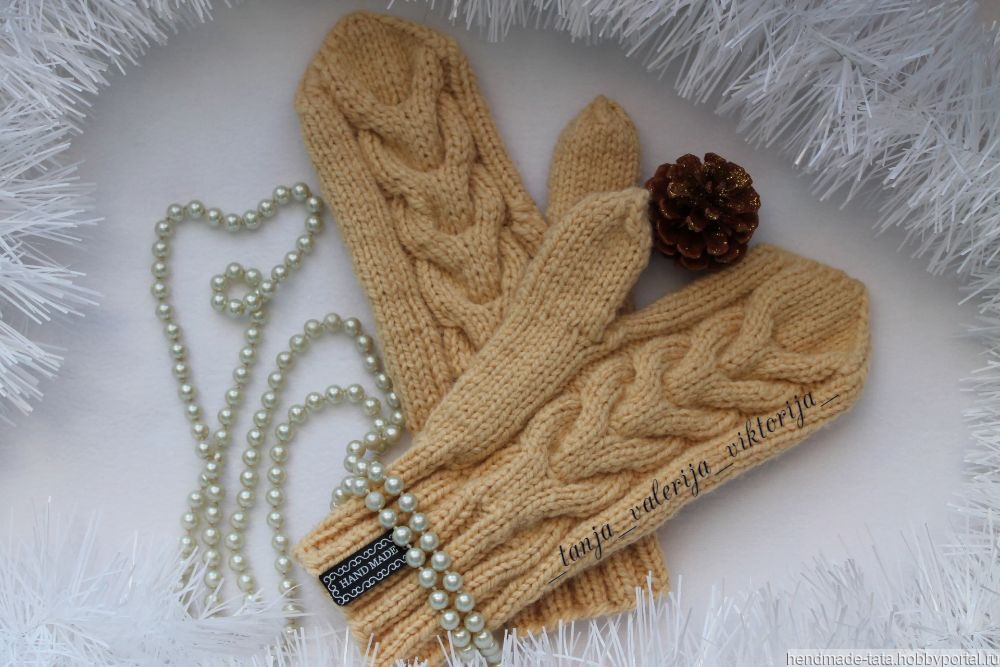 Варежки с королевской косой, состав пряжи 50% шерсть, 50% акрил.