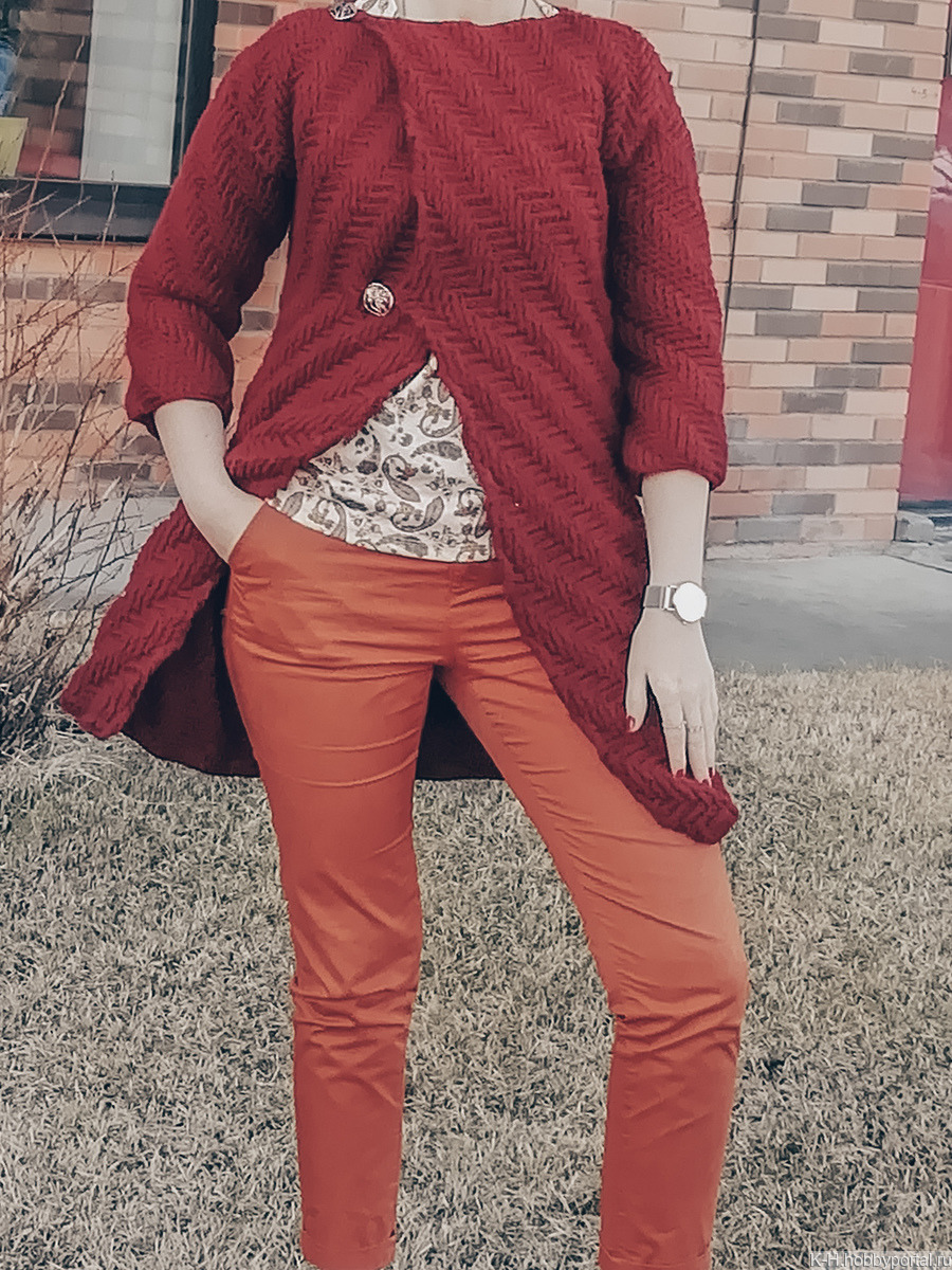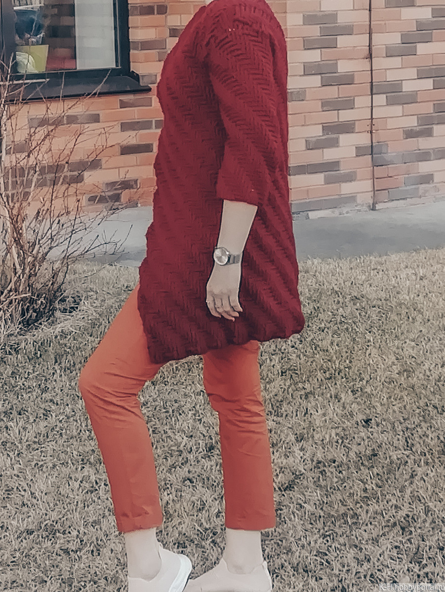 Отлично подходит для температуры от +7 до +17 С (для весьма переменчивой сибирской весны). На спине узор сходиться в клин, который делает это изделие особенно изящным и неповторимым.