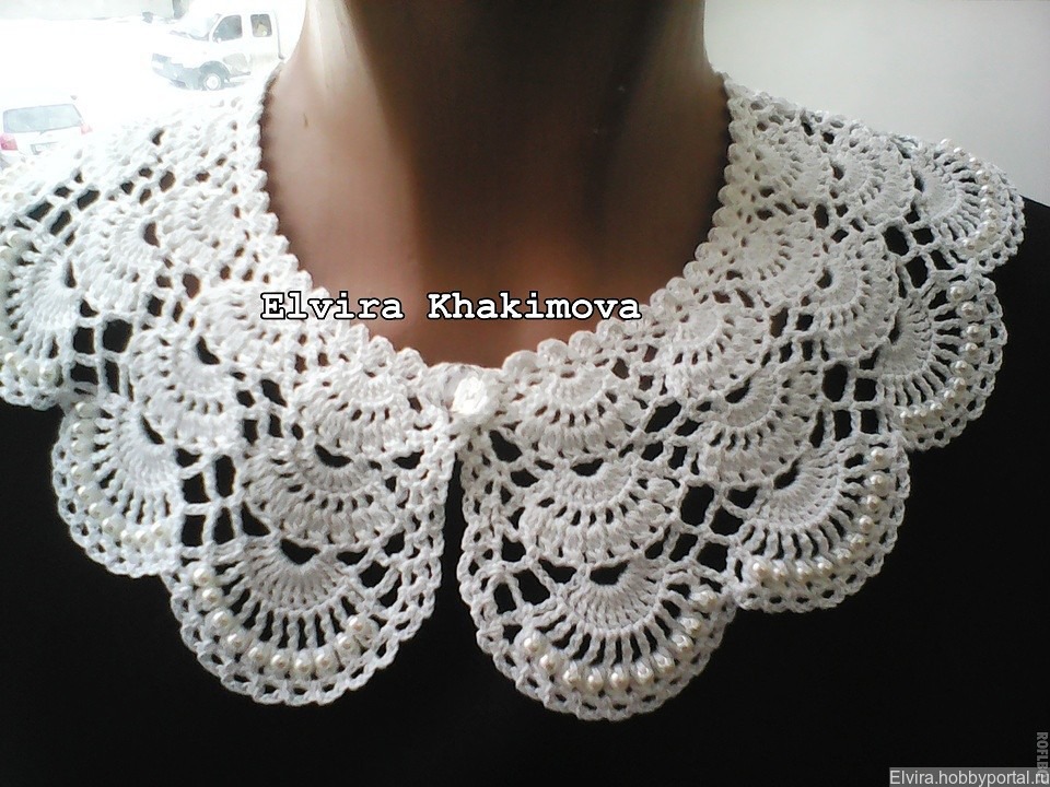Красивый ажурный воротничок освежит и украсит любимое платье или блузку. Идеально подходит для школьного платья. Украшен бусинами под жемчуг. Бусины ввязаны, не оторвутся.