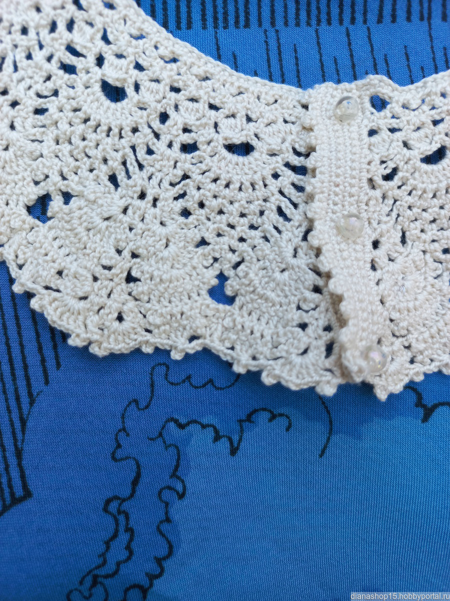 Воротник ажурный съемный вязаный выполнен из 100% хлопка, ручной работы.