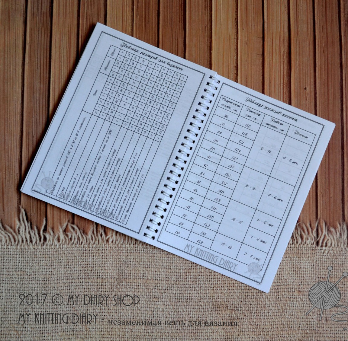 Для рабочих записей в дневнике есть 30 блоков по 4 страницы каждый. На первой странице есть поля для удобного заполнения всех необходимых параметров вязания ) Далее располагаются целых 3 страницы для пометок, внесения схем и описания хода работы. Очень удобно то, что все страницы разлинованы для прописывания схем узоров. Если узор получается большим и не помещается на одной странице, то можно использовать разворот для продолжения узора. В общем поле для деятельности позволяет внести Вам практически любую схему. Она всегда будет под рукой, в красивом оформлении и не потеряется, как терялись ранее распечатанные или просто записанные в разных местах Ваши пометки.