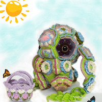 Размеры игрушки меняются от толщины подобранной Вами пряжи и размера крючка соответствующего выбранной пряже.