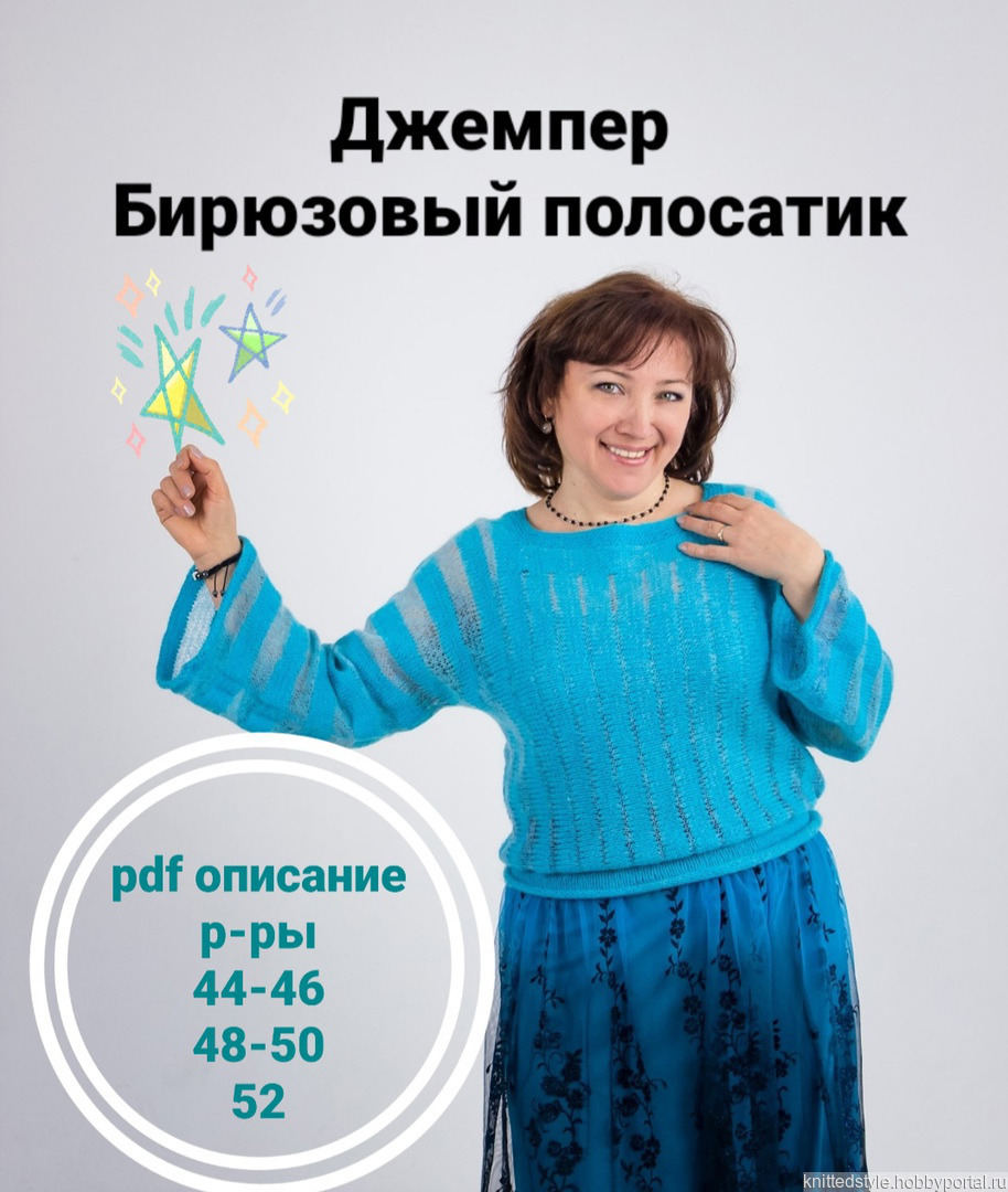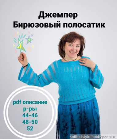 Джемпер Бирюзовый полосатик Р-р 44-46, 48-50 и 52 Поперечное вязание