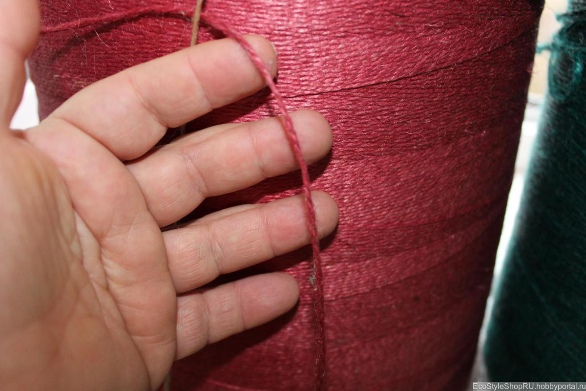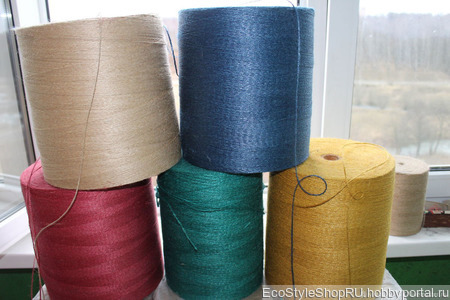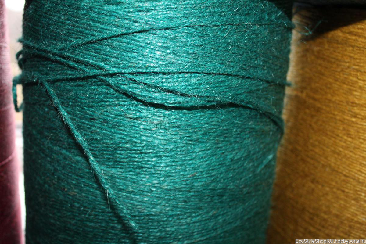 Джутовая пряжа цветная скрутка в 2 нити толщина 1.2 мм в 1 кг 1000 метров цена указана за 1 кг пряжа достаточно жесткая, в работе комфортная, изделия из джута