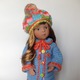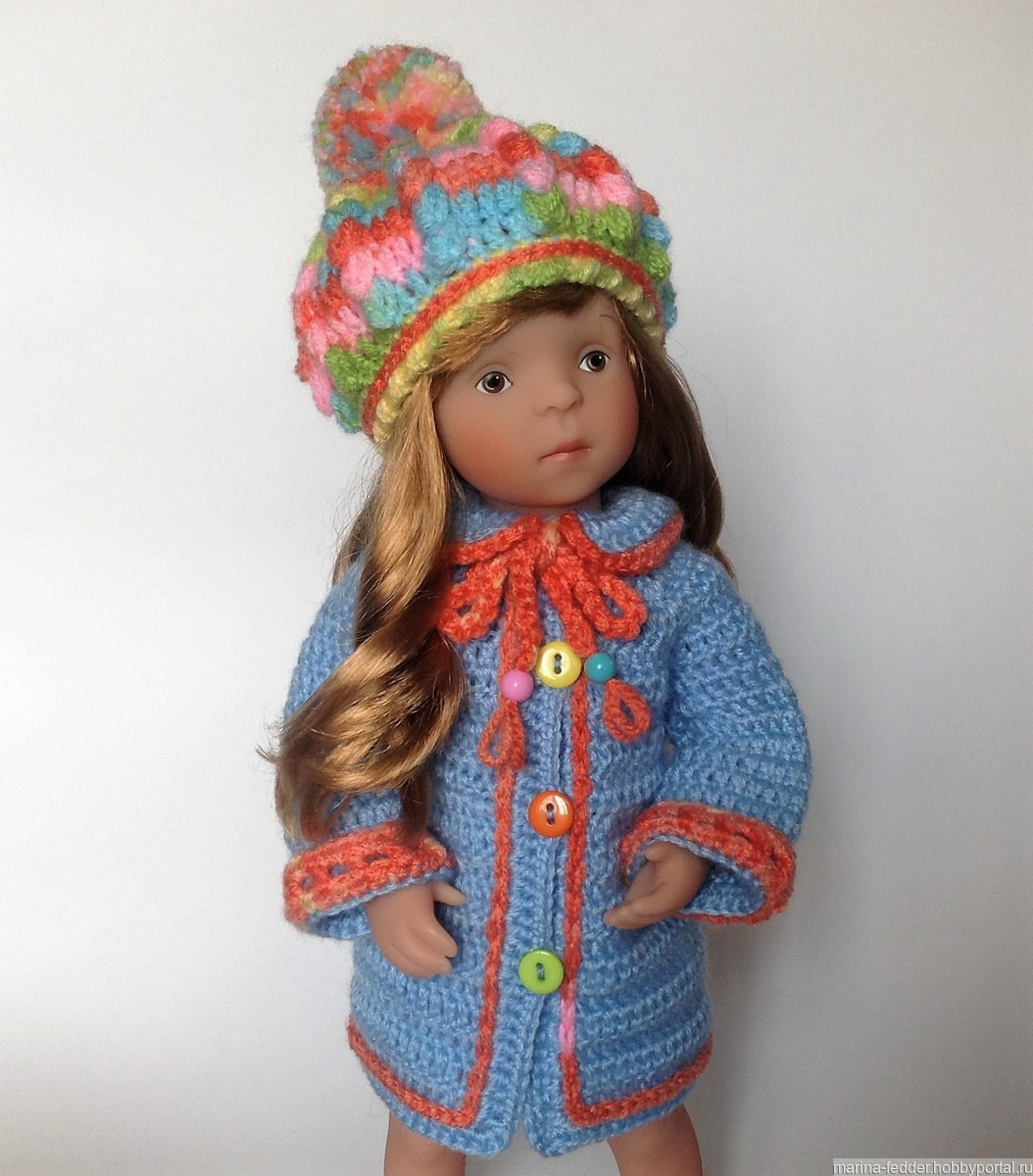Веселый комплект (пальто и шапка) для куклы на рост 32-34см и объем головы 23-24 см.