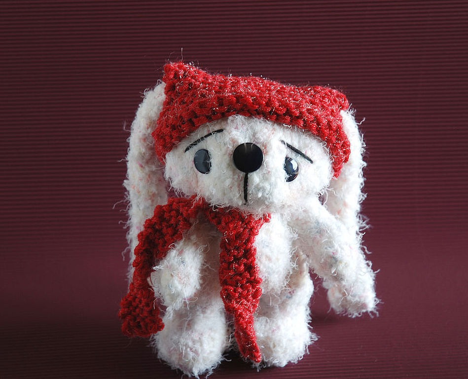 белый, зайчик, зайка, мастер-класс, описание, красная шапка, вязаный заяц, описания зайца, заяц мк