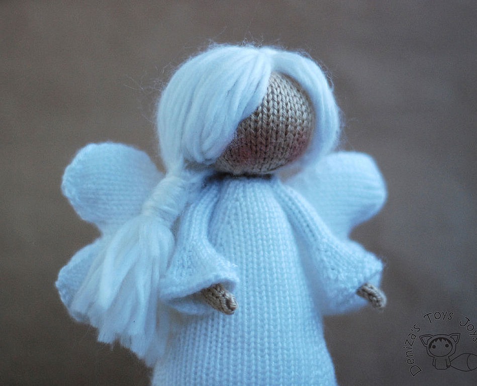 Мастер класс содержит пошаговое описание с фотографиями как связать этого нежного белого ангела и сделать ей прическу . Мастер-класс не содержит уроков по вязанию спицами. Предполагается наличие основных навыков вязания по кругу на 4-х носочных спицах.