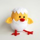 Мастер класс содержит пошаговое описание с фотографиями, как связать этого цыпленка и скорлупку яйца .