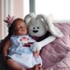 Мастер класс содержит пошаговое описание с фотографиями, как связать это детское одеяло и голову зайки с нежными лапками.