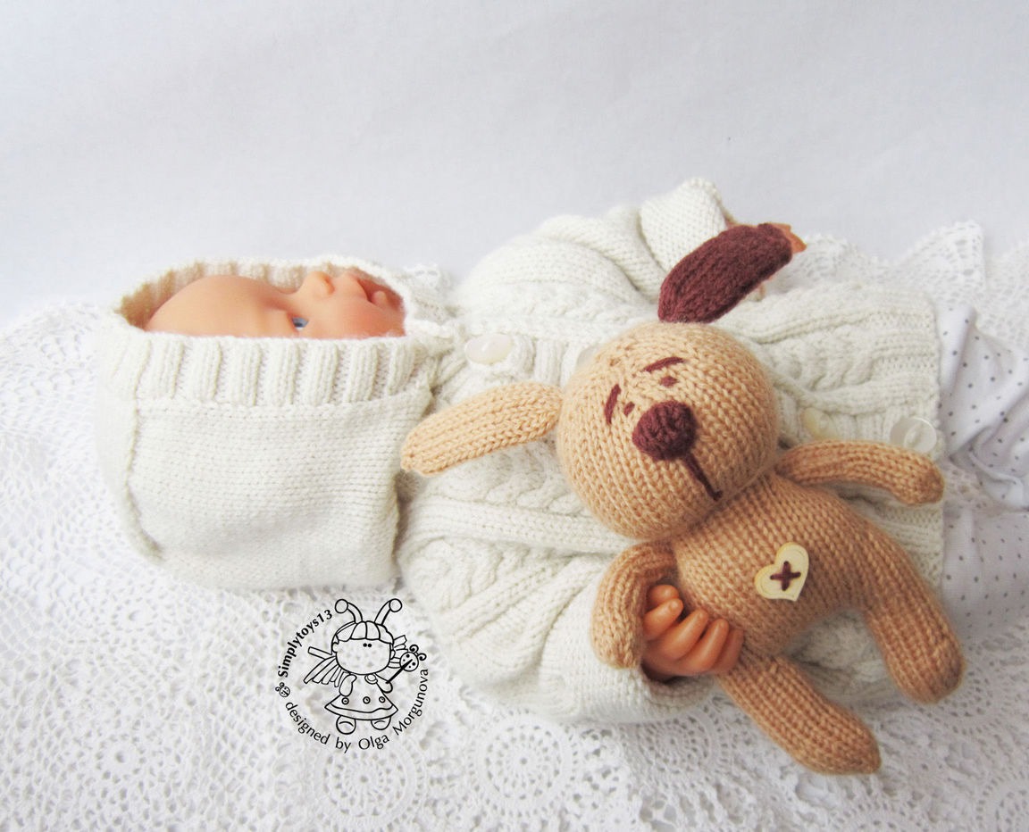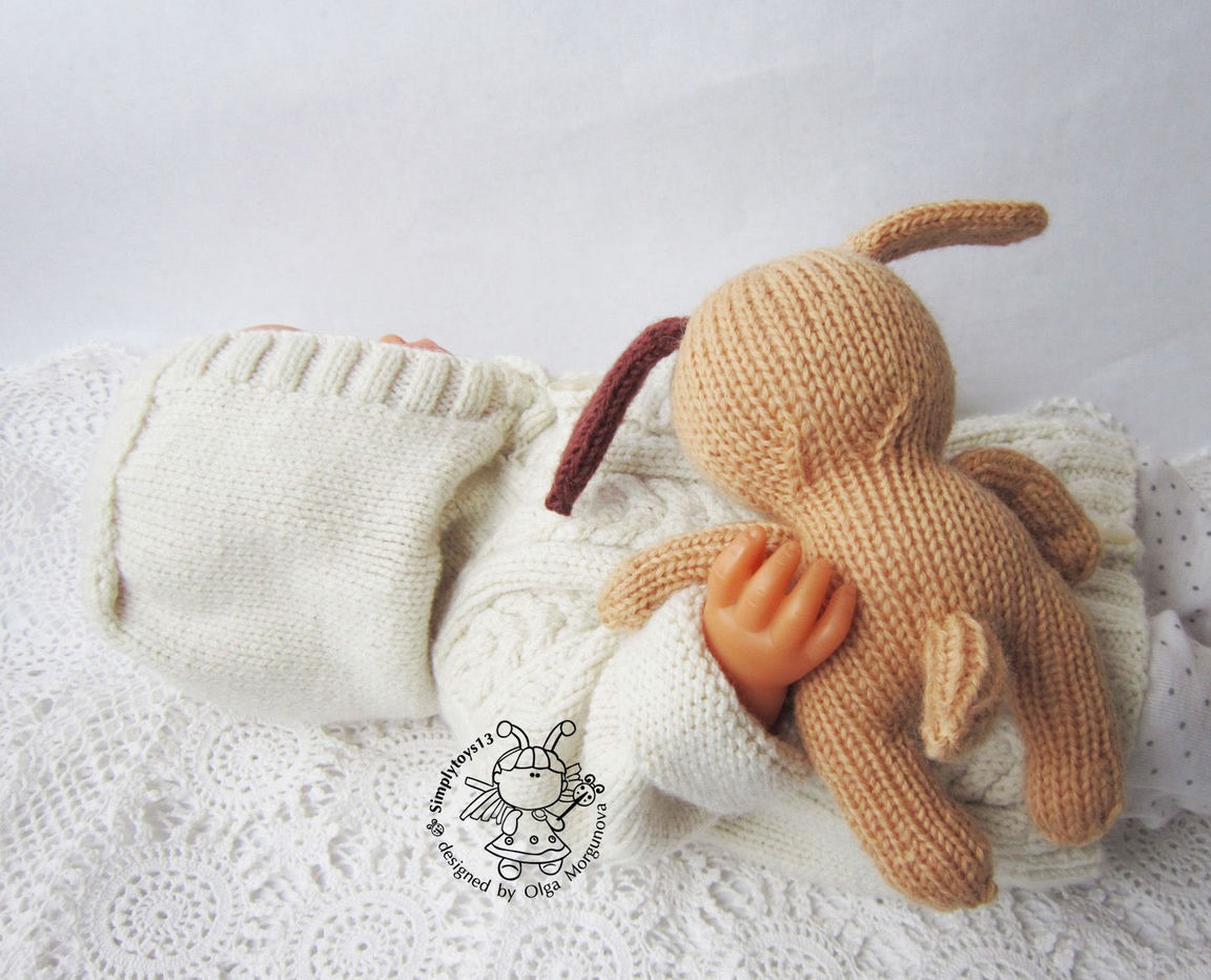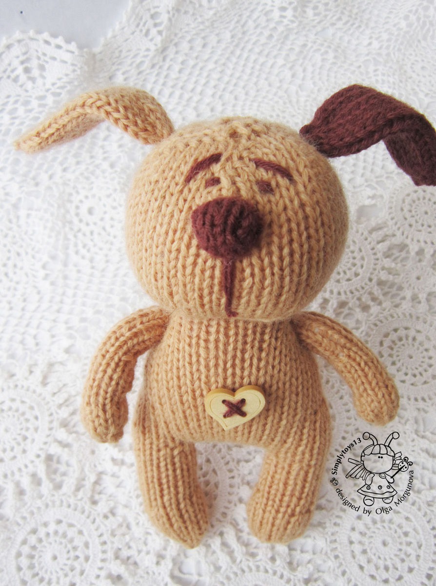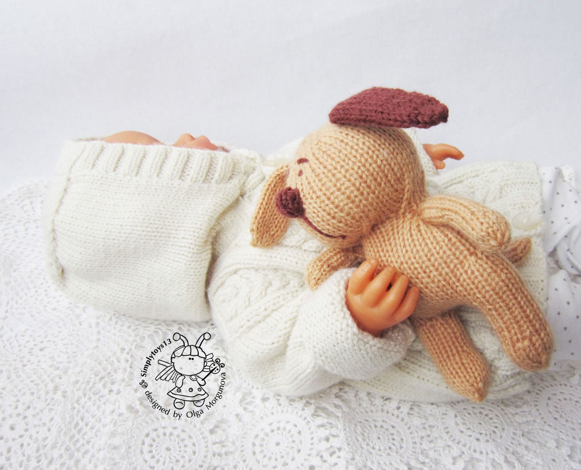 вязаная игрушка, зайка, бежевый, игрушка для сна, авторская игрушка, вязание спицами, мастер-класс, мк, описание вязания, вязаный щенок, описание игрушки, щенок спицами, игрушка для новорожденных, описание собачки, собачка спицами, мастер класс собачка