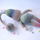 Голова-туловище-ноги вяжутся одной деталью. Ручки-подвижны, на ниточных шарнирах.