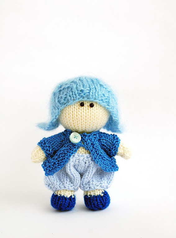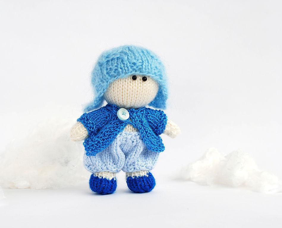 вязаная игрушка, голубой, вязаная кукла, вязание спицами, мастер-класс, малыш, описание, куколка, описание игрушки, описание куклы, вязаная спицами кукла, вязаный малыш