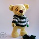Мастер класс содержит пошаговое описание с фотографиями, как связать этого мишку, его свитер и берет .