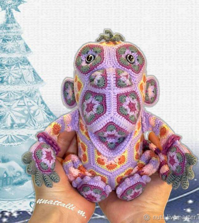 обезьяна, мастер-класс, комбинированный, мк, описание, крючок, африканский цветок, цветочный мотив, вязание из мотивов, лоскутное вязание