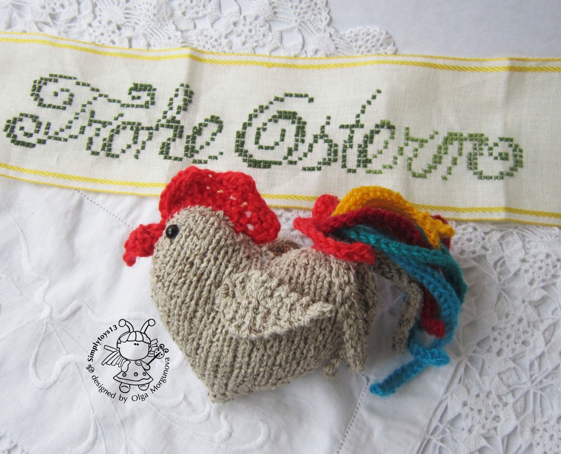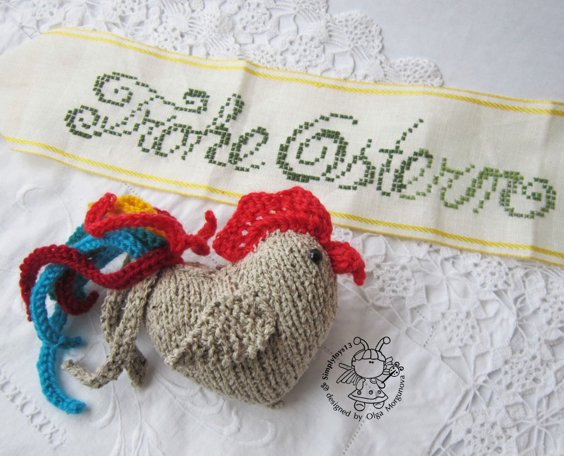 вязаная игрушка, петушок, петух, авторская игрушка, вязание спицами, мастер-класс, комбинированный, мк, пасха, пасхальный сувенир, пасхальный подарок, описание вязания, пасхальный декор, описание игрушки, описание зайки