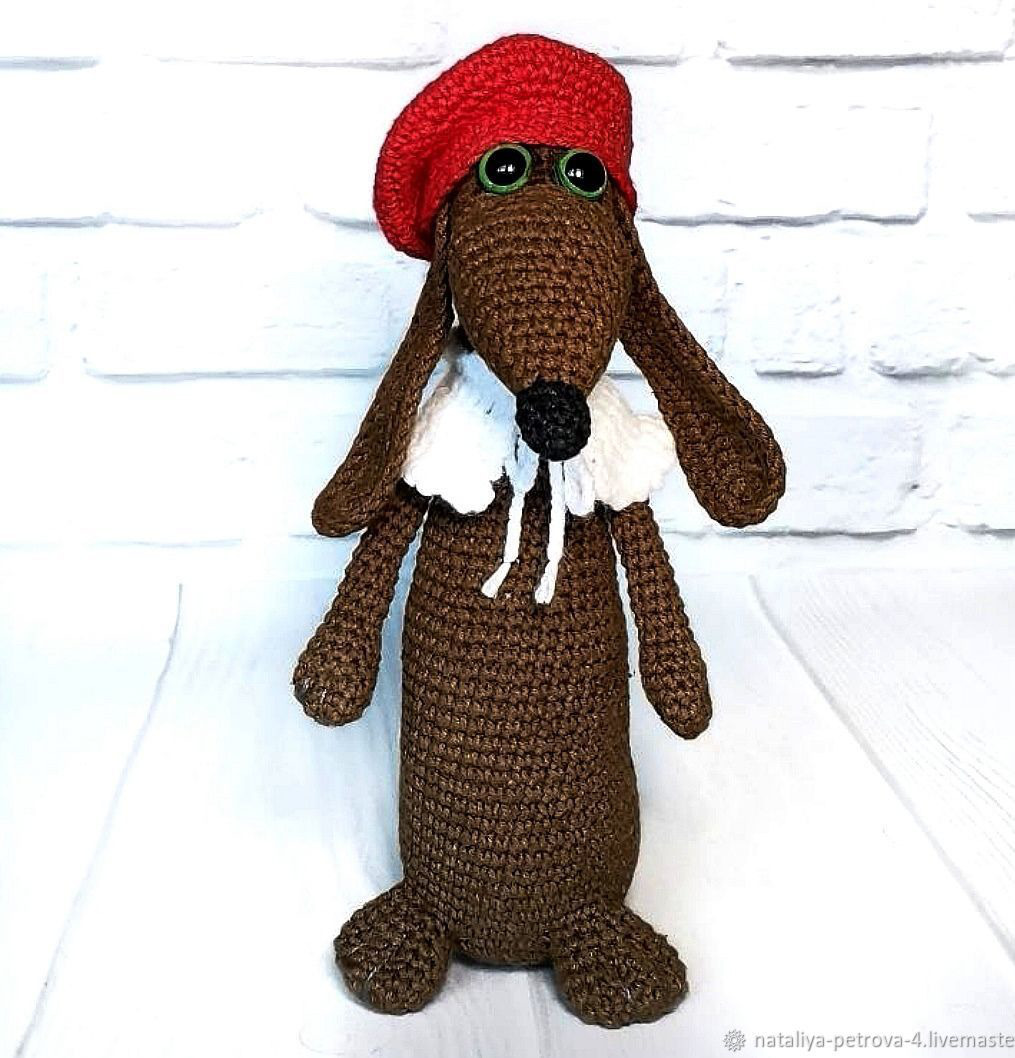 Мастер класс по вязанию крючком "Такса в шляпе".