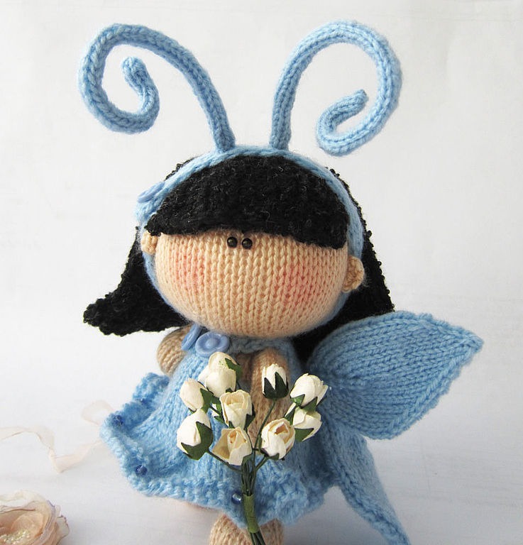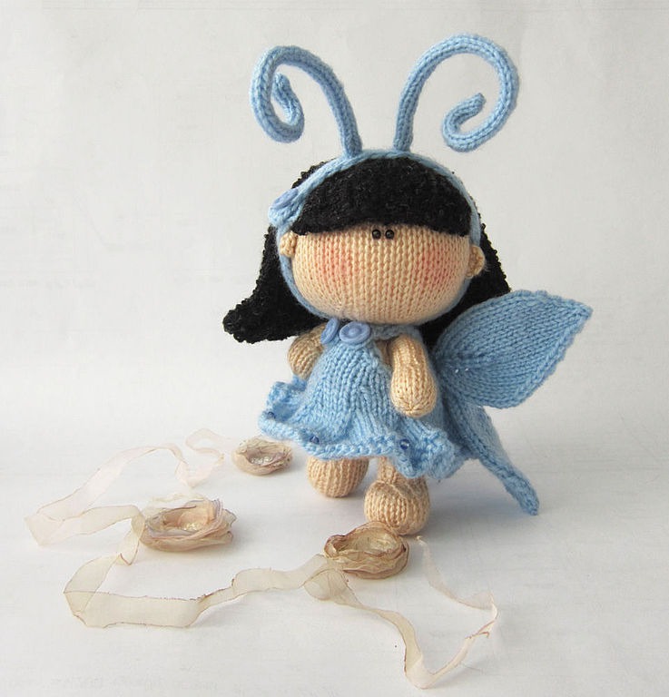 вязаная игрушка, бабочка, человечек, авторская игрушка, вязание спицами, мастер-класс, кремовый, мк, пупсик, описание вязания, пупсик и одежка, мотылек, куколка, описание игрушки, кукла вязаная, забавная куколка, пупсик бабочка