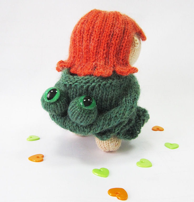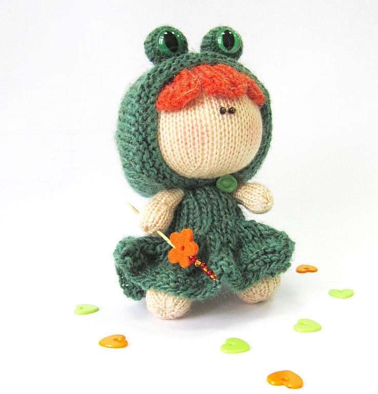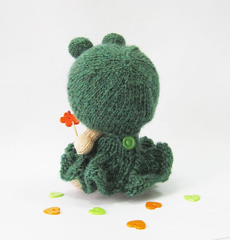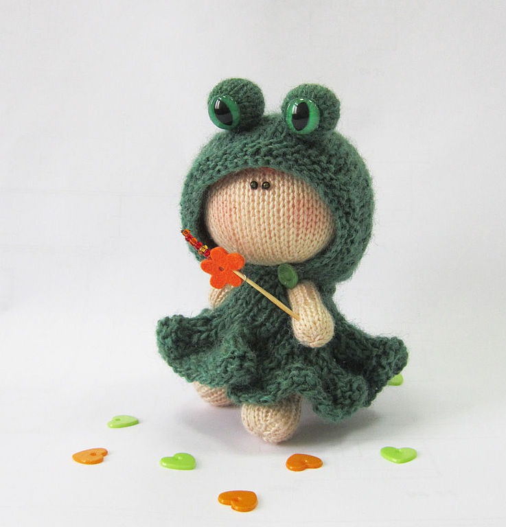 вязаная игрушка, зелёный, лягушка, человечек, авторская игрушка, вязание спицами, мастер-класс, кремовый, мк, пупсик, описание вязания, пупсик и одежка, куколка, описание игрушки, кукла вязаная, забавная куколка, Лягушечка
