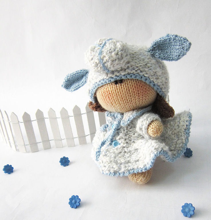 вязаная игрушка, овечка, человечек, авторская игрушка, вязание спицами, мастер-класс, мк, пупсик, описание вязания, пупсик и одежка, куколка, овца, описание игрушки, кукла вязаная, забавная куколка, барашка