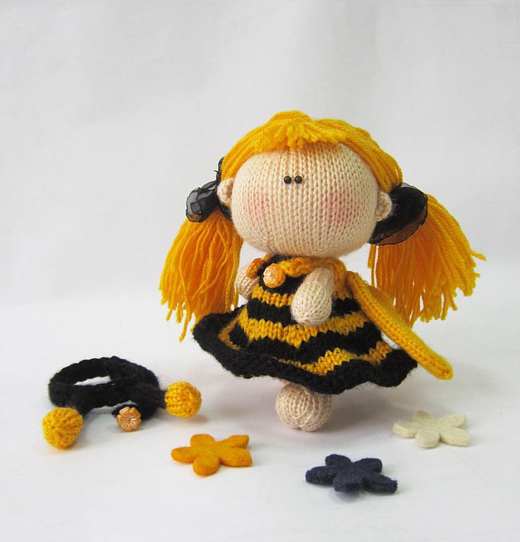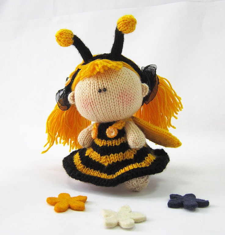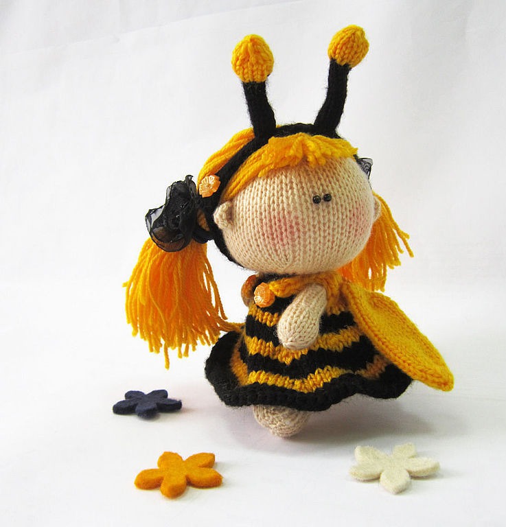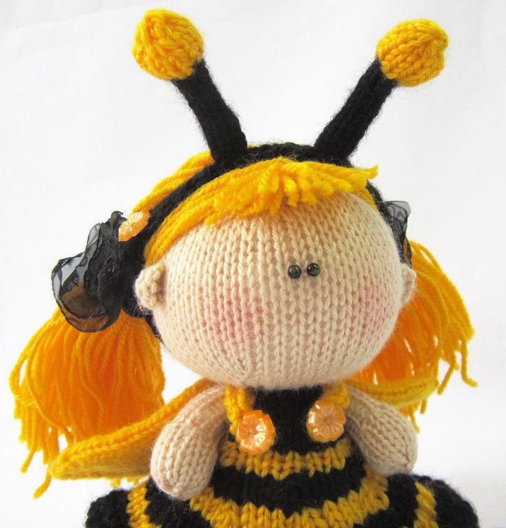 вязаная игрушка, человечек, пчела, пчелка, авторская игрушка, вязание спицами, мастер-класс, кремовый, мк, пупсик, описание вязания, пупсик и одежка, куколка, описание игрушки, кукла вязаная, забавная куколка, пупсик пчелка