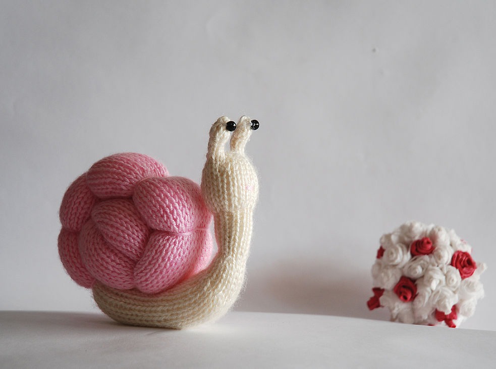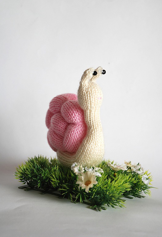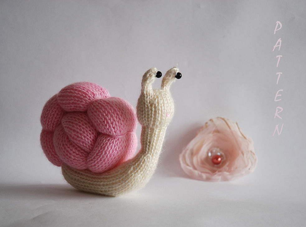 розовый, вязание спицами, мастер-класс, описание, улитка, вязание игрушки, ванильно-белый, вязаная улитка, вязание улитки, розовая улитка, романтика, мк улитка