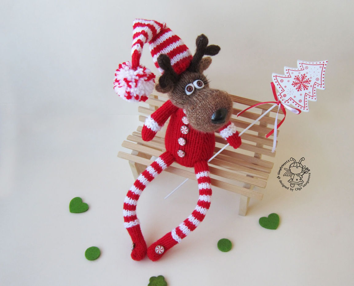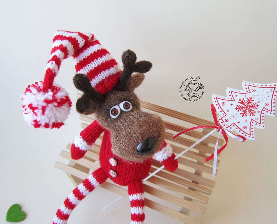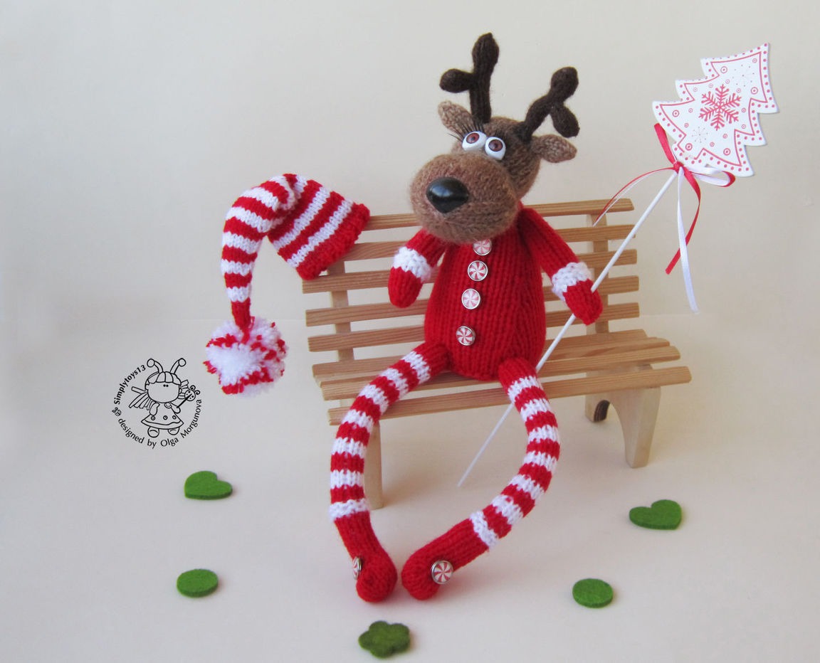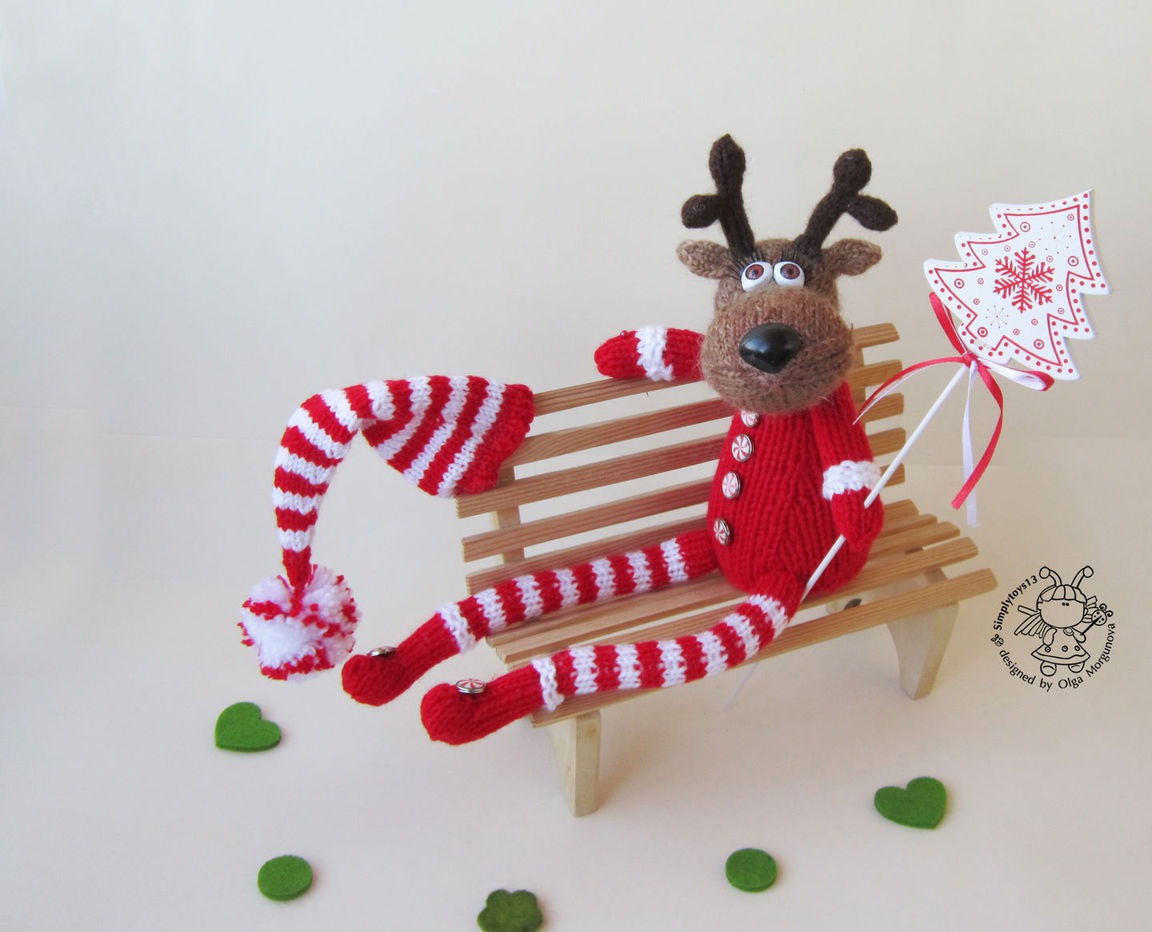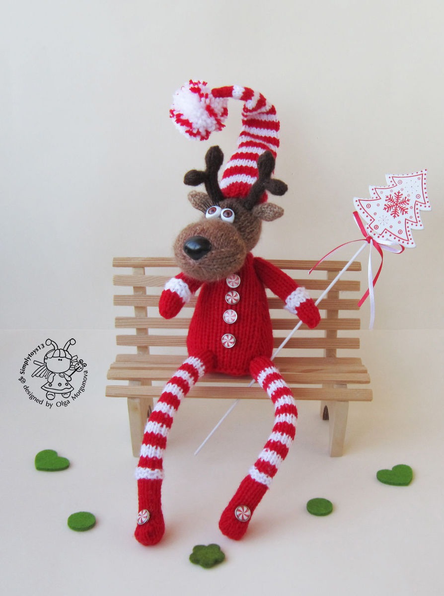 вязаная игрушка, авторская игрушка, вязание спицами, мастер-класс, комбинированный, мк, амигуруми, олень, зайчик игрушка, олень спицами, вязаный олень, олень амигуруми, олень новогодний