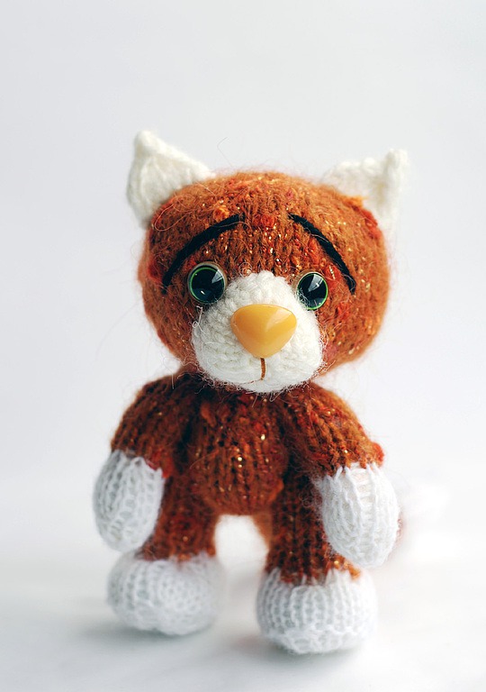 Мастер класс содержит пошаговое описание с фотографиями, как связать рыжего котенка.