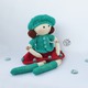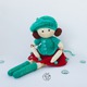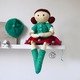 Игрушка связана лицевой гладью по кругу на 4-х носочных спицах. Голова , ручки и ножки - подвижны. На локтях и коленях - бусины для шарнирного соединения суставов.