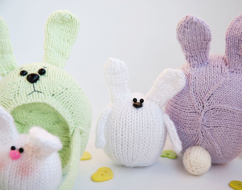 Мастер класс содержит пошаговое описание с фотографиями как связать 2 вида пупсиков и 4 варианта заячих шапочек .