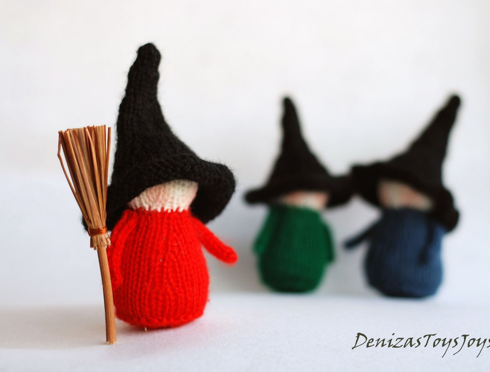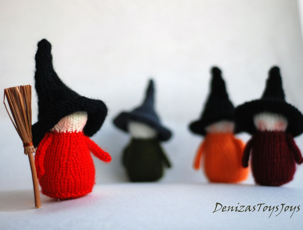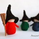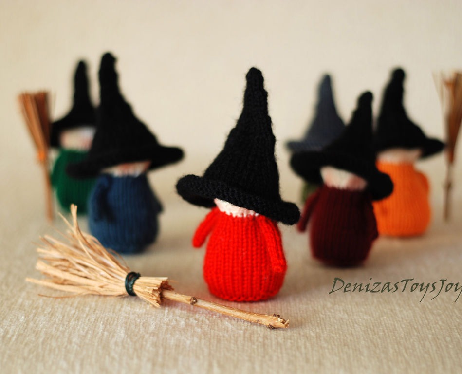 Мастер класс содержит пошаговое описание с фотографиями как связать ведьмочек 2-х размеров и шапки для них .