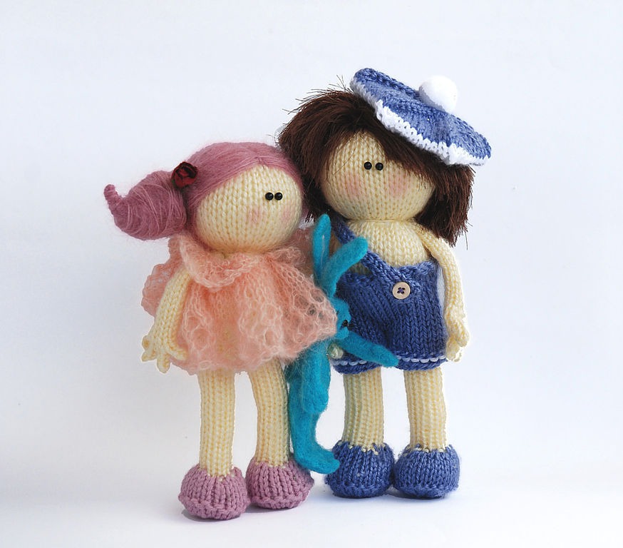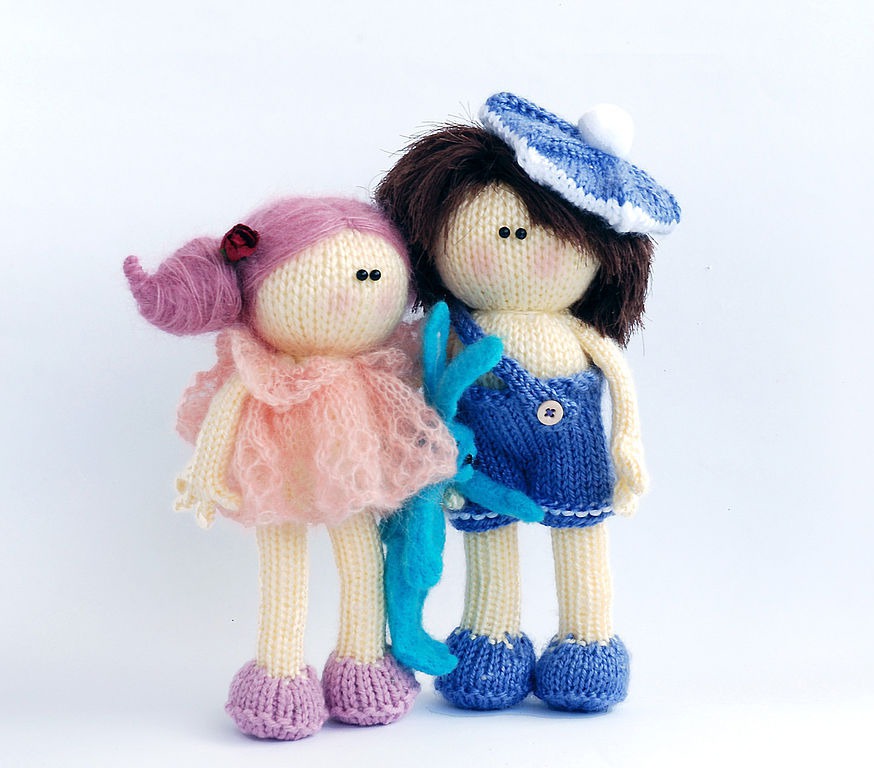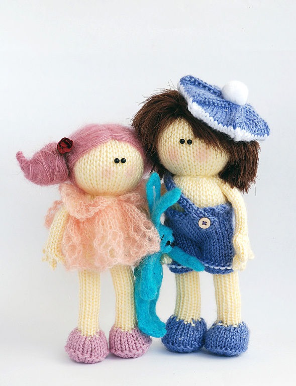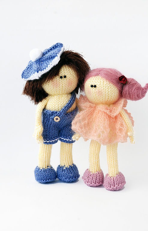 Мастер класс содержит пошаговое описание с фотографиями, как связать кукол и их одежду, и сделать им прически.