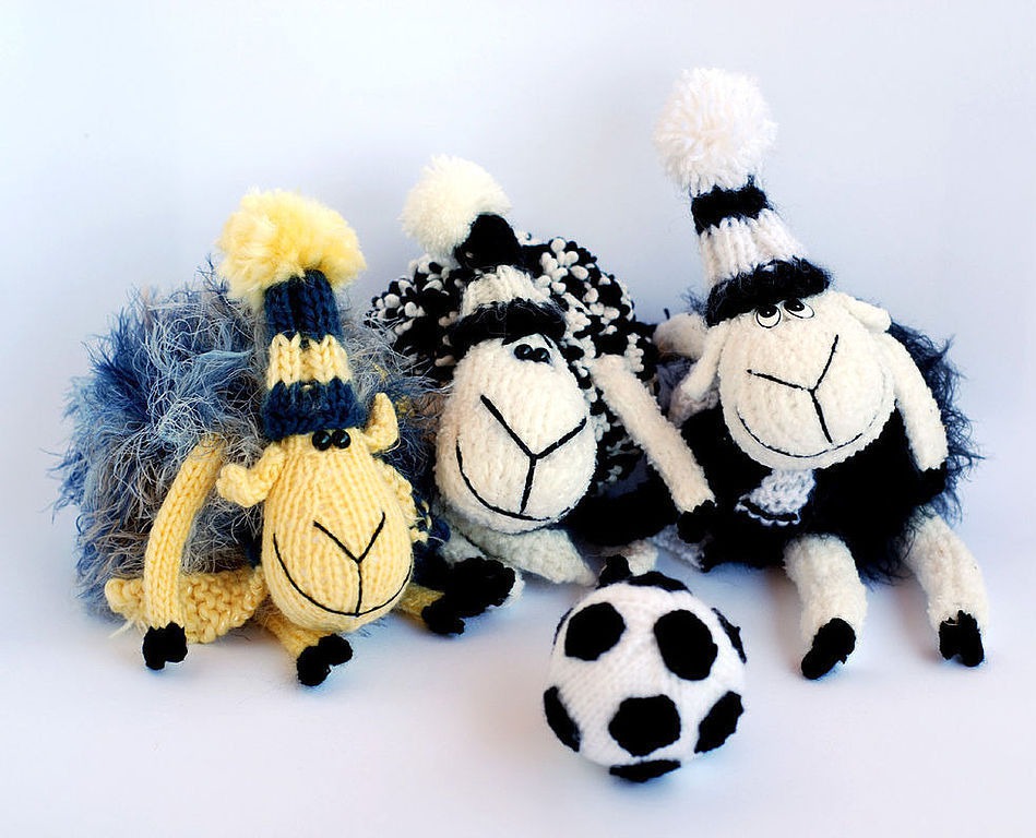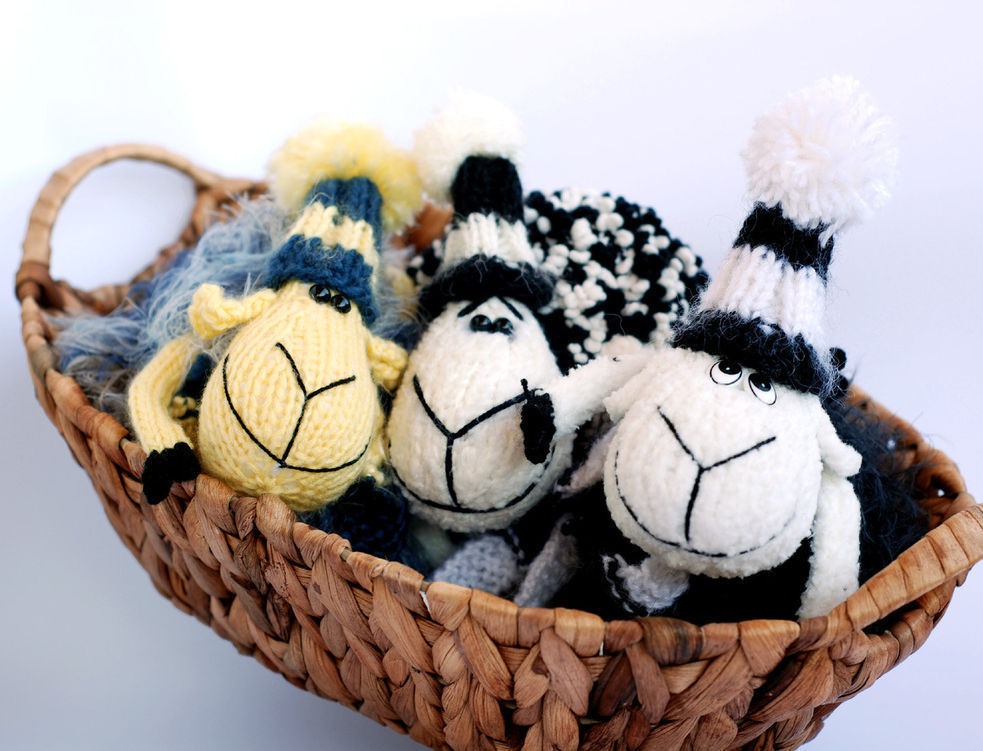 Все эти овечки связаны по одному описанию. Разница достигается использованием различной фактуры пряжи.