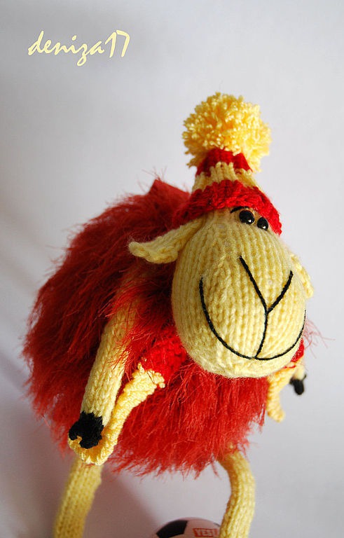 Мастер класс содержит пошаговое описание с фотографиями, как связать овечку, ее шапочку и шарфик.