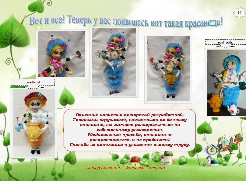 Описание состоит из 17 страниц,31 промежуточное фото, содержит подробное описание процесса и сборки, а также утяжек и оформления лица.