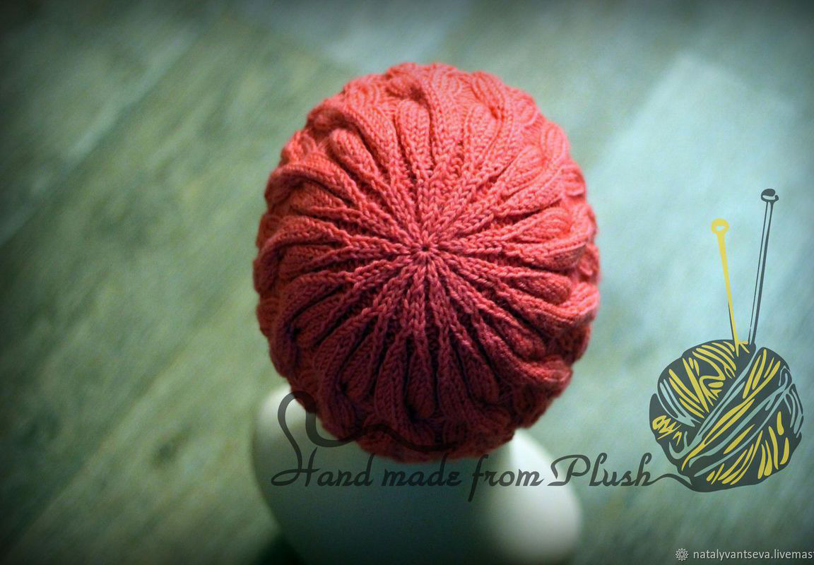 шапка, шапка вязаная, коралловый, обучающие материалы, мк, мк в формате pdf, мк по вязанию, обучение вязанию, обучение, шапка женская, описание вязания, описание, шапка с косами, описание процесса, описание работы, шапка с подкладкой