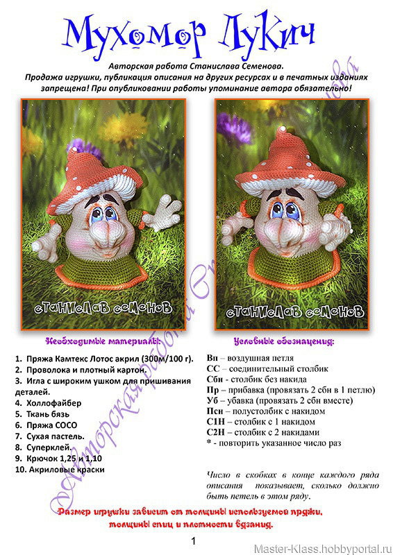 ручная работа, подарок, мастер-класс, ткань, пастель сухая, крючок, сказка, пряжа, игрушки крючком, Мухомор, гриб, игрушки спицами, персонаж мультика, станислав семенов