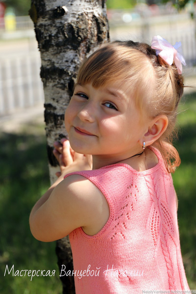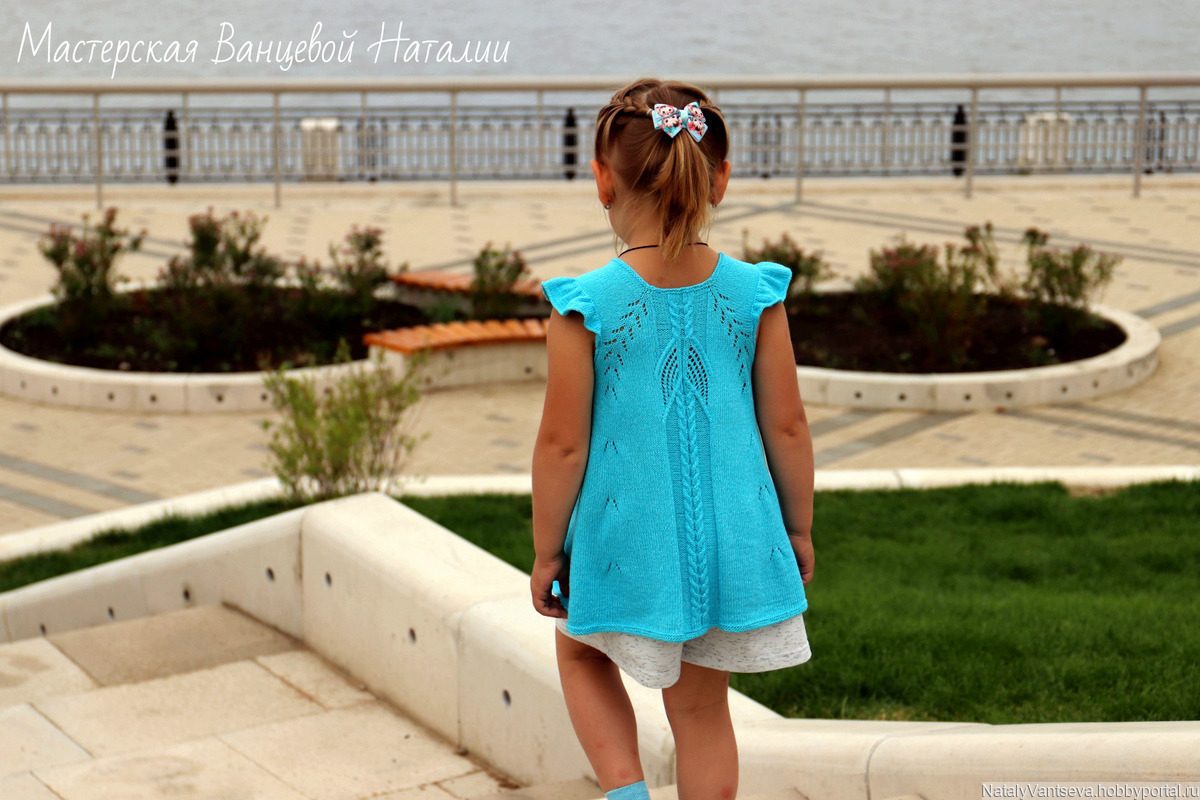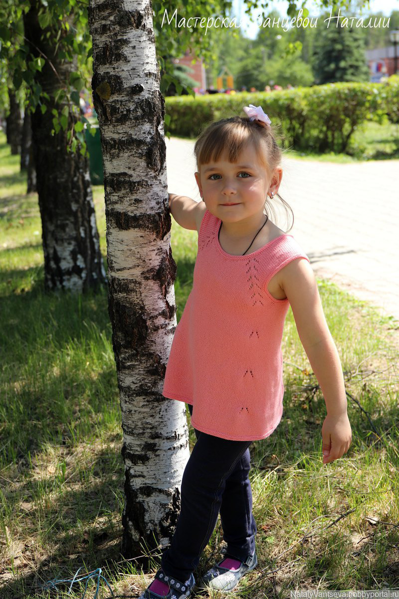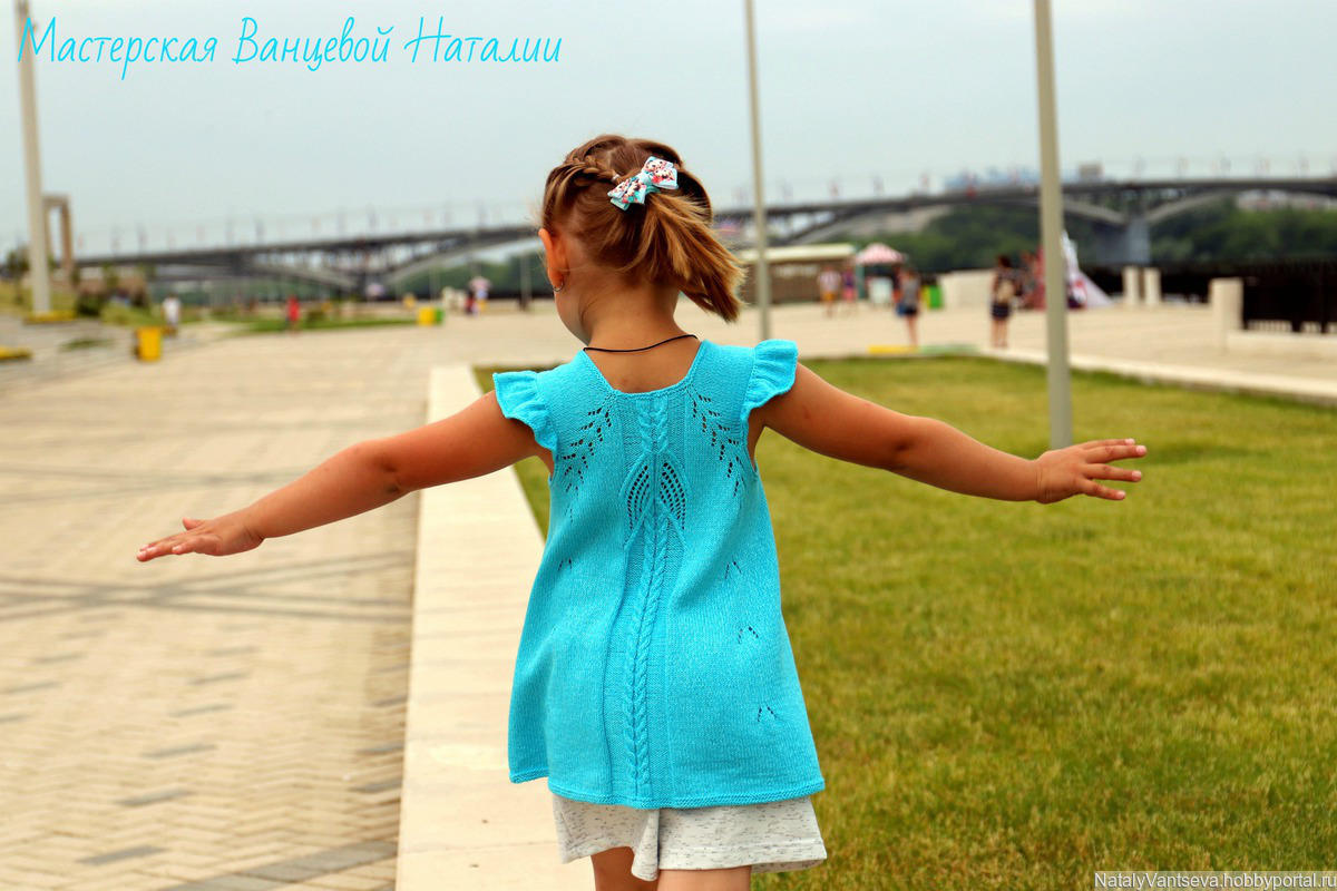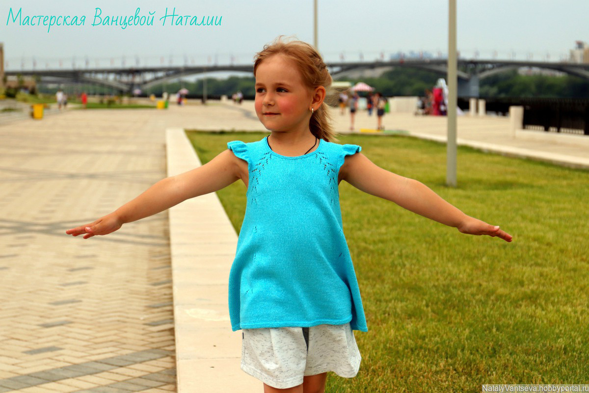 Летний детский хлопковый бесшовный топ, который можно выполнить в виде туники или платья, с несколькими вариантами обработки проймы: простая обвязка, пышные или не пышные крылышки.