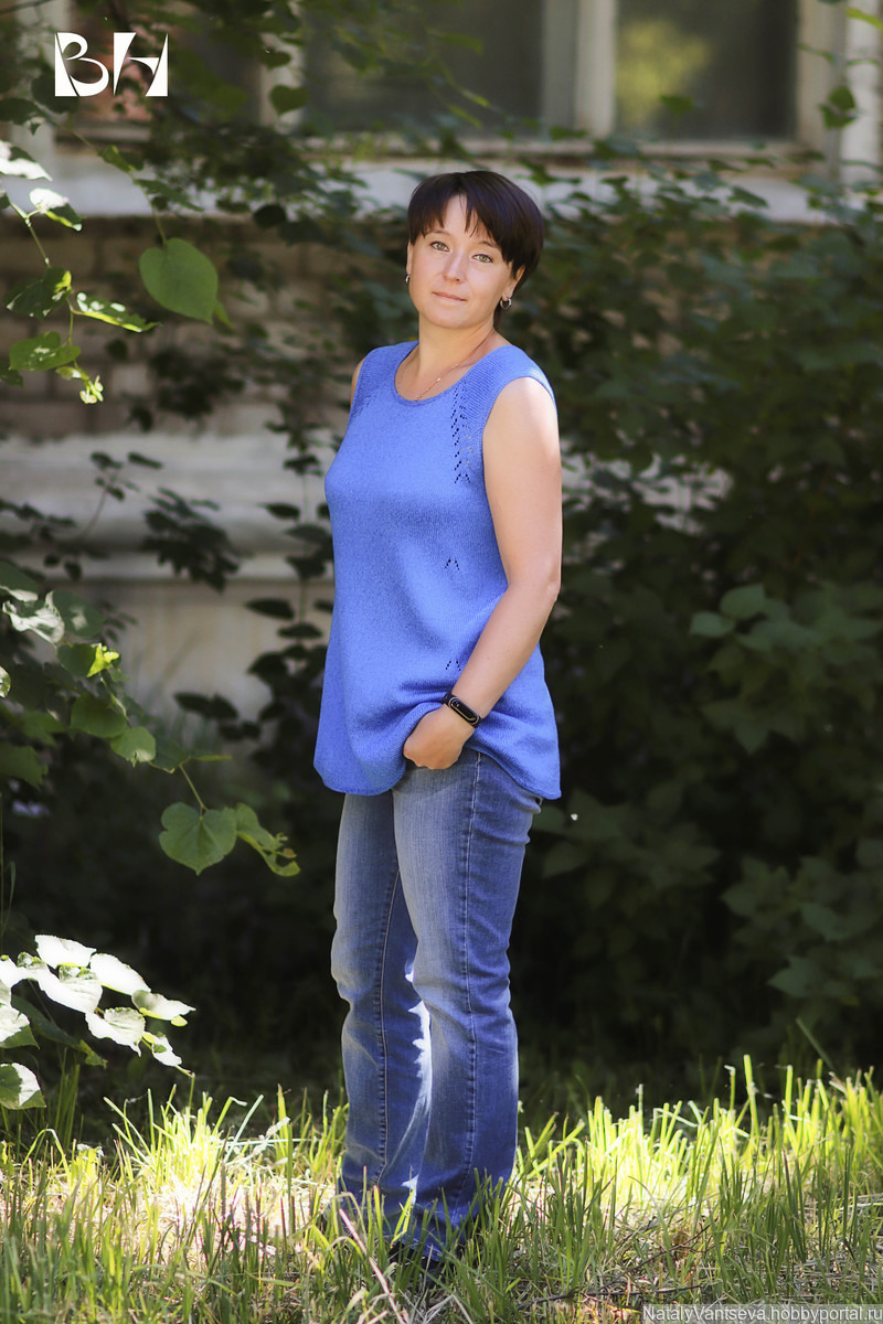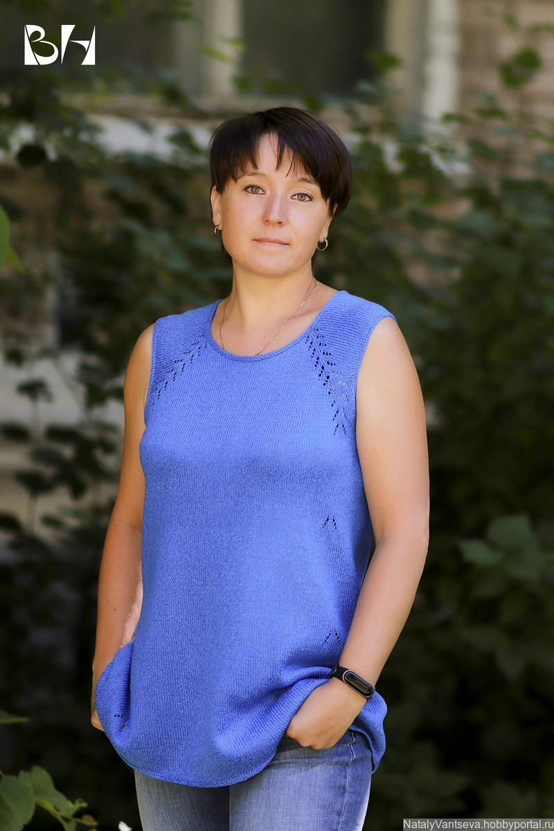 Летний хлопковый бесшовный топ, который можно выполнить в виде туники или платья, с несколькими вариантами обработки проймы: простая обвязка, пышные или не пышные крылышки.