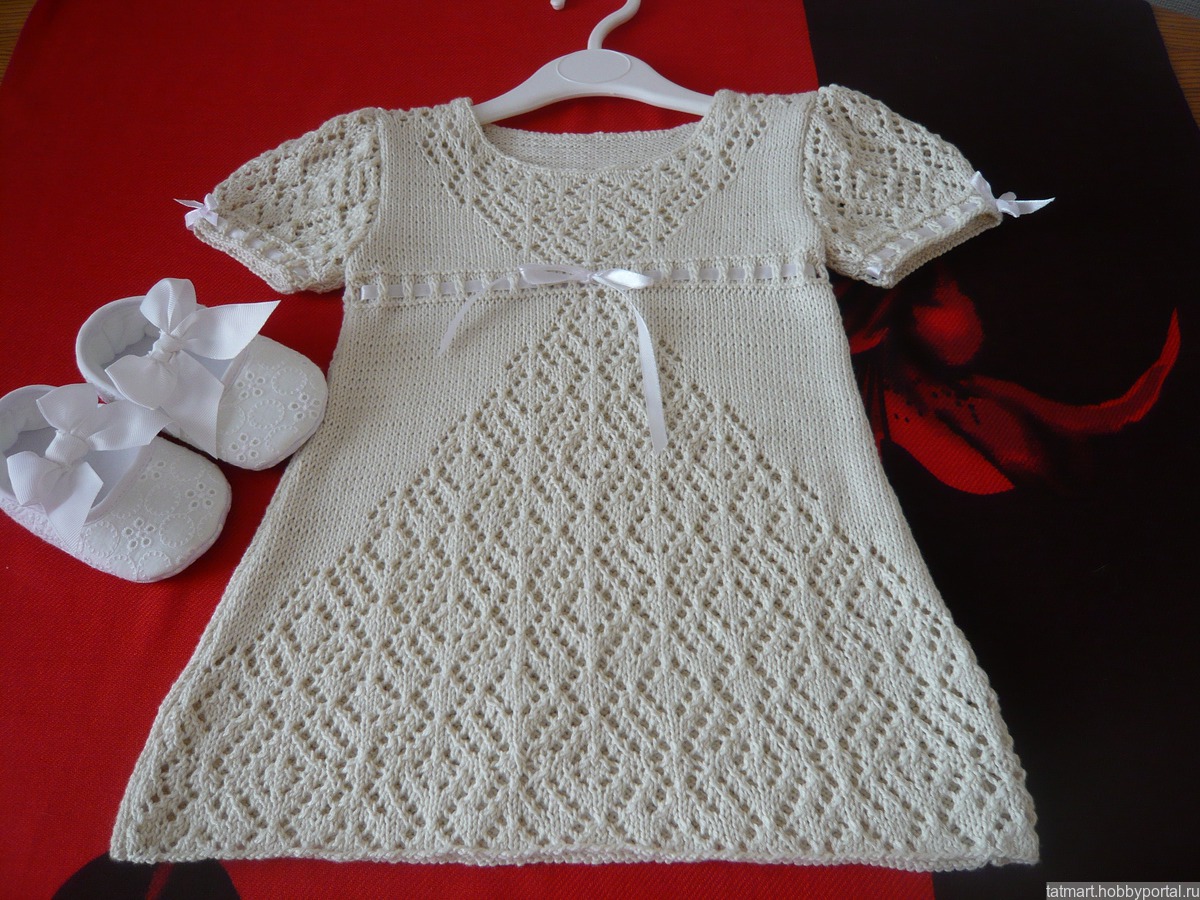 малышам, вязание спицами, ажурное платье, вязание для детей, летнее вязаное платье