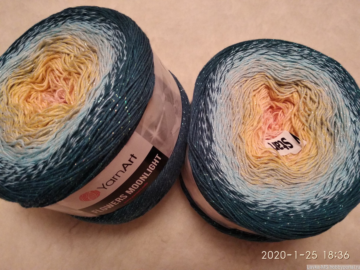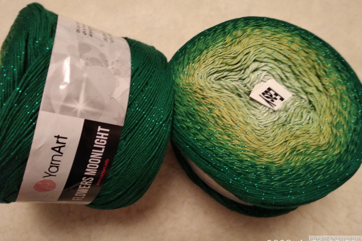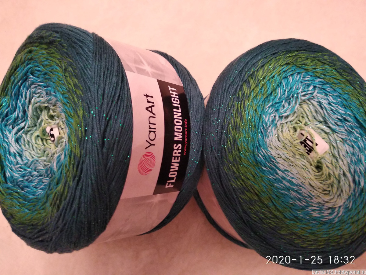 Абсолютный хит 2018-2019гг., но с добавкой люрекса, отчего вещь, связанная из этой пряжи, будет благородно мерцать, подобно лунному свету, благодоря которому эта нить приобрела название FLOWERS MOONLIGHT.
