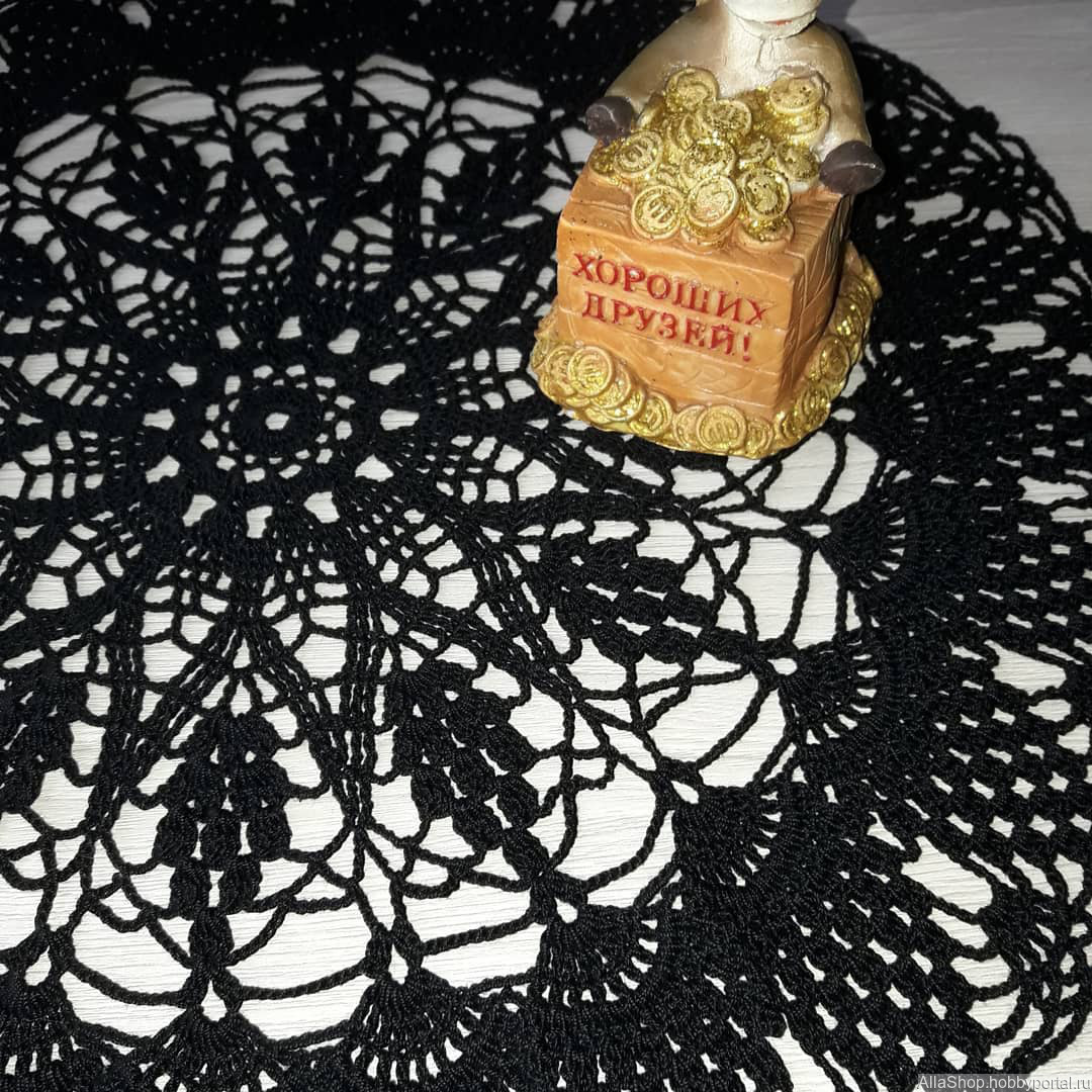 салфетка крючком, салфетка ажурная, салфетка кружевная, салфетка вязаная крючком, на подарок, интерьерная салфетка, Чёрная салфетка