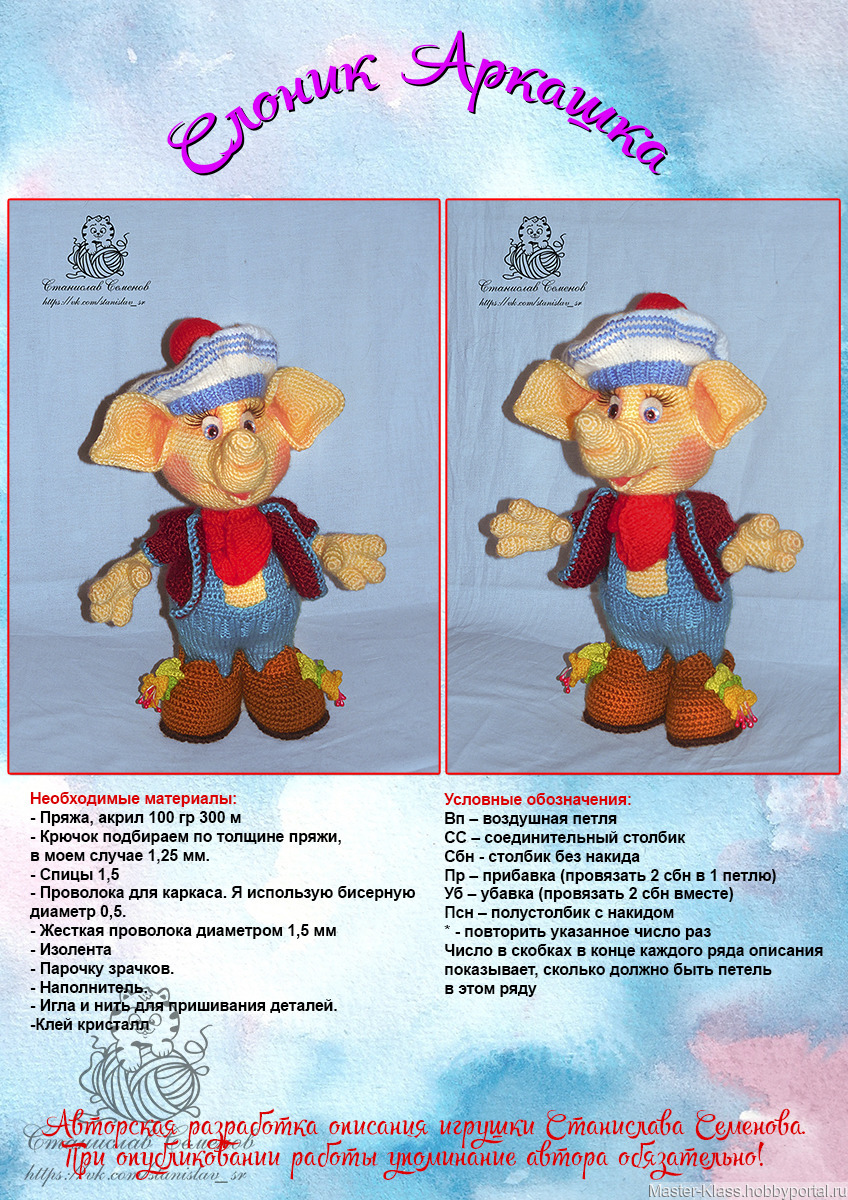 Мастер-класс по вязанию крючком и спицами в формате ПДФ, содержит подробное описание процесса создания с промежуточными фотографиями ).