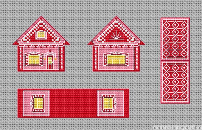 Все домики ДМС -4 цвета, бисер 1-2 цвета. Очень маленькие.Можно посмотреть готовый в альбоме Отшивы по моим схемам.