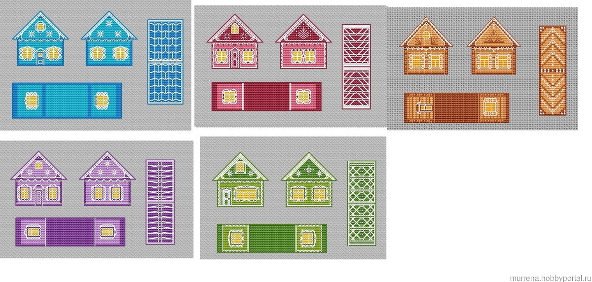 Все домики ДМС -4 цвета, бисер 1-2 цвета. Очень маленькие.Можно посмотреть готовый в альбоме Отшивы по моим схемам.