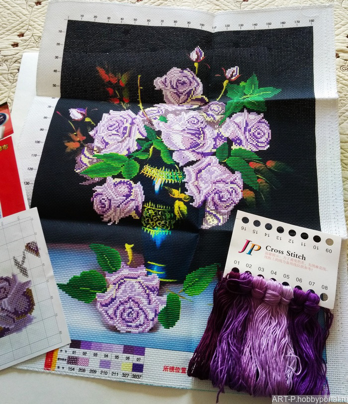 для девушки, вышивка, для женщины, цветы, розы, подарки, схемы для вышивки, для рукоделия, натюрморт, набор для вышивания, розы в вазе, материал для творчества, фиолетовые розы