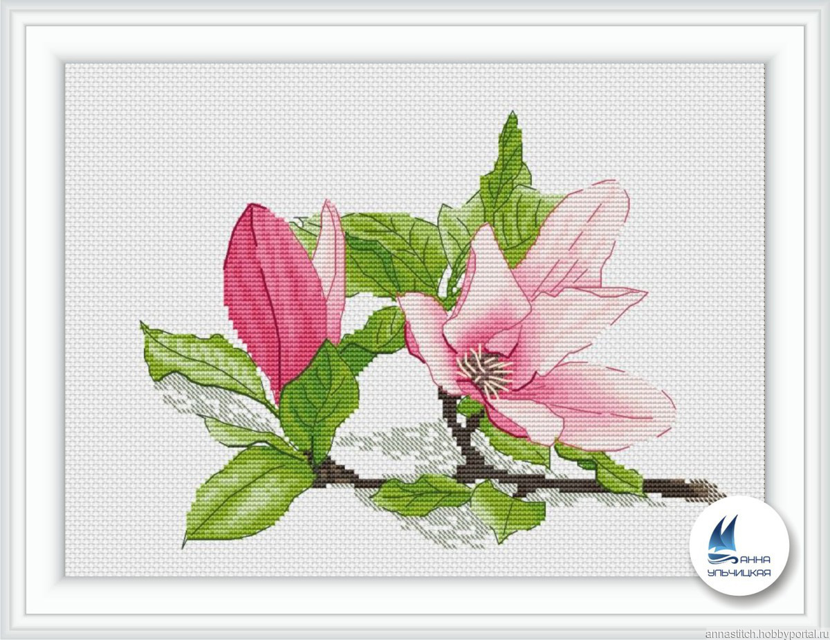 Размер 150х110 крестиков, 19 цветов + 5 блендов, палитра DMC. Используются крест (в 2 нити), полукрест, счетный бэкстич (в 1 и 2 нити).